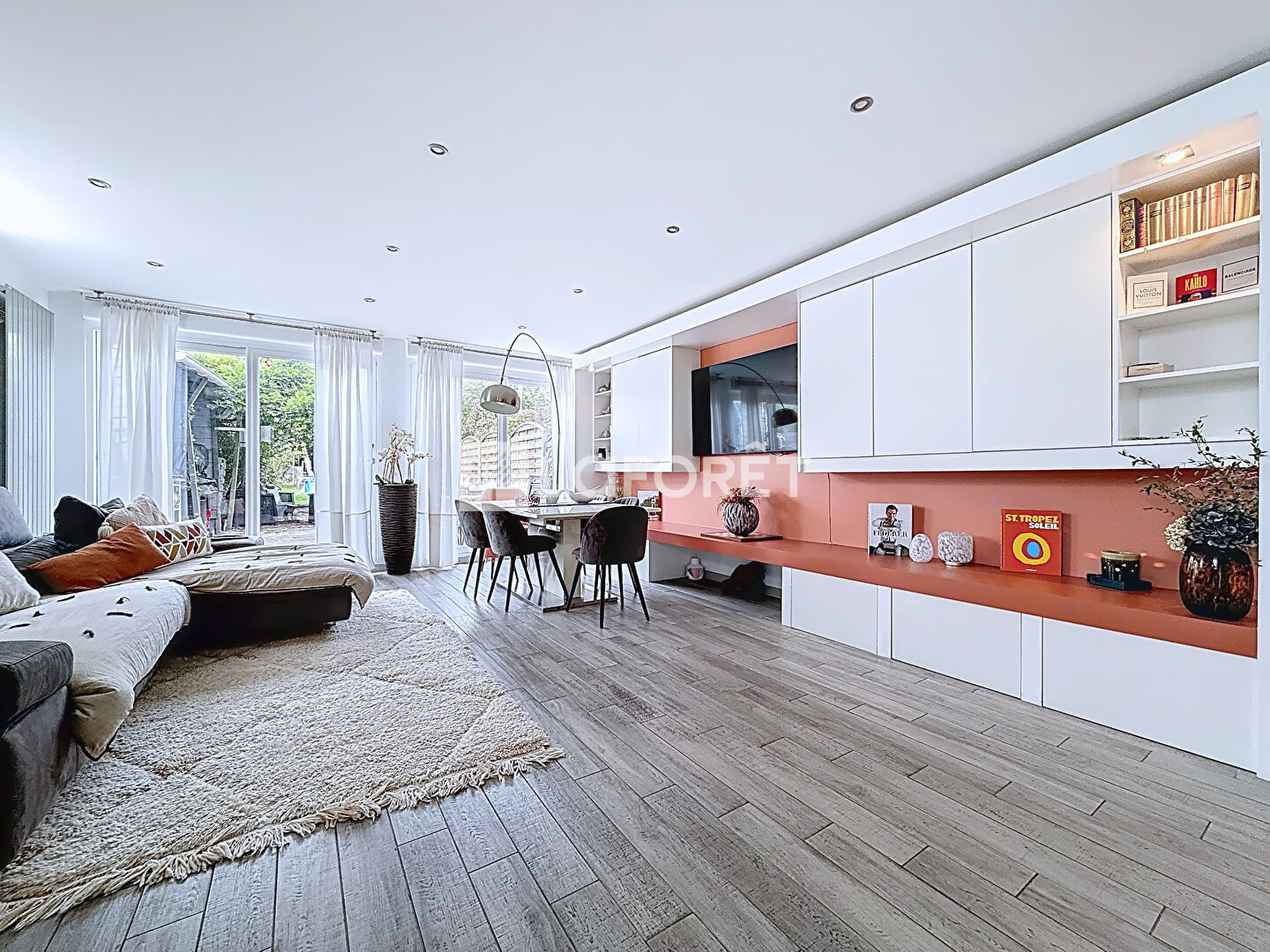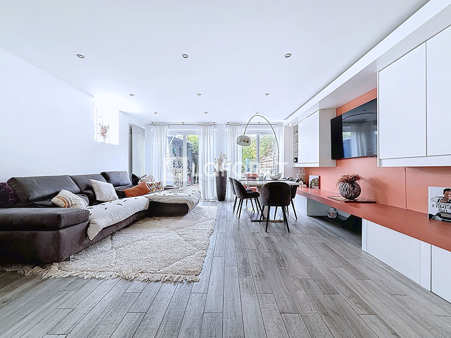 Elle se compose d'une spacieuse pièce de vie ouvrant sur le jardin avec terrasse, une cuisine contemporaine entièrement équipée avec salle à manger et espace buanderie, quatre belles chambres, dont une suite parentale avec baignoire, une salle d'eau et WC séparé. Nombreux rangements et espaces optimisés.