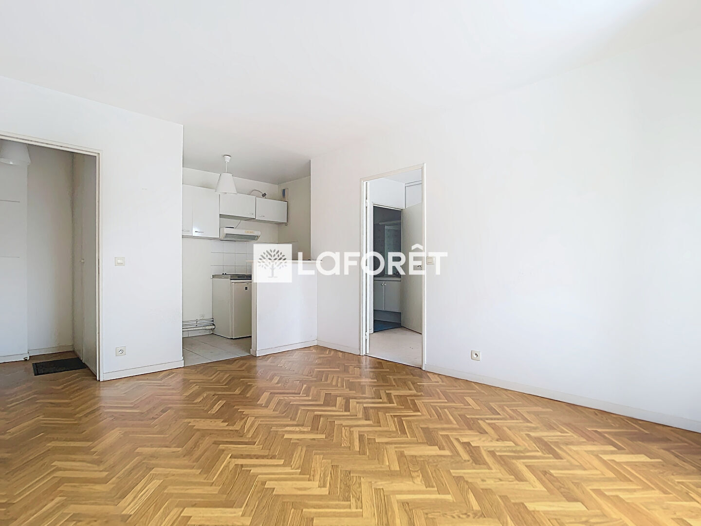 2 pièces : 1 chambre, 1 séjour lumineux avec cuisine ouverte, salle de bains avec WC.