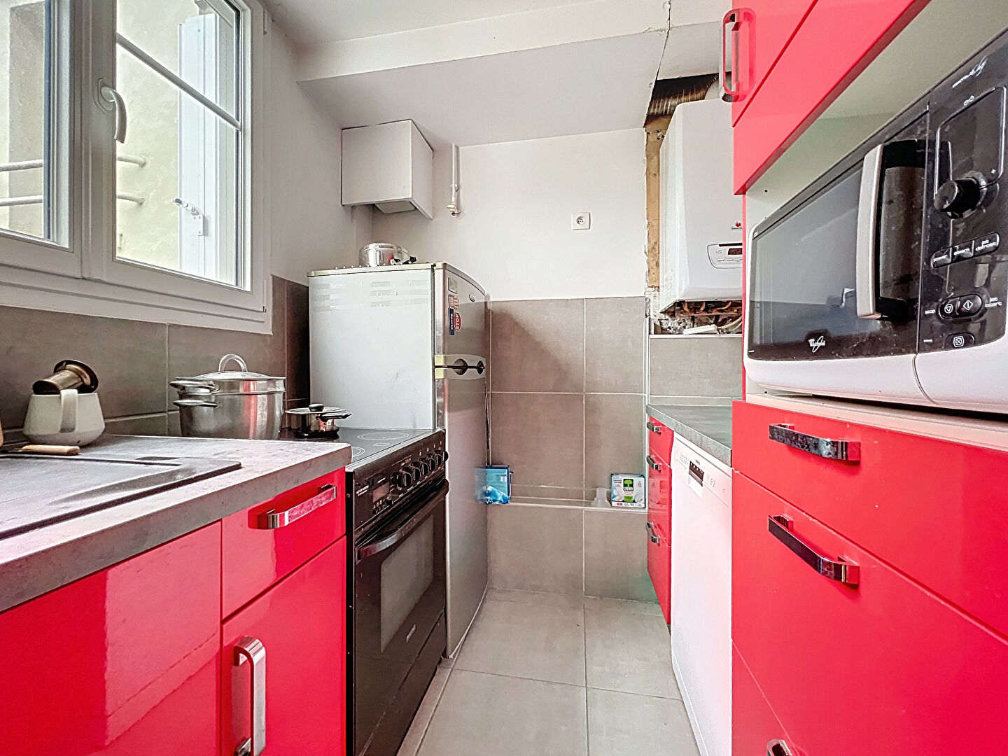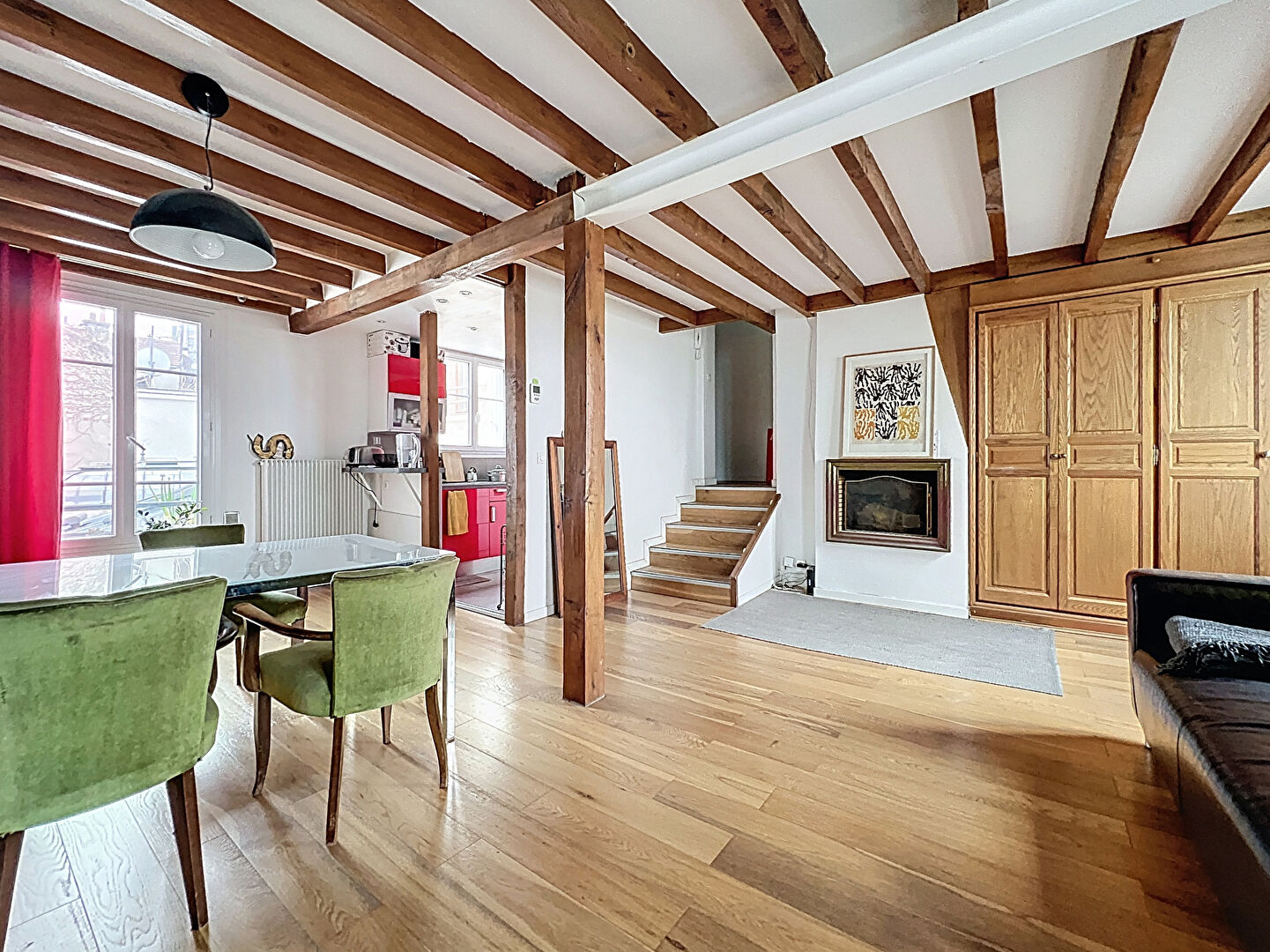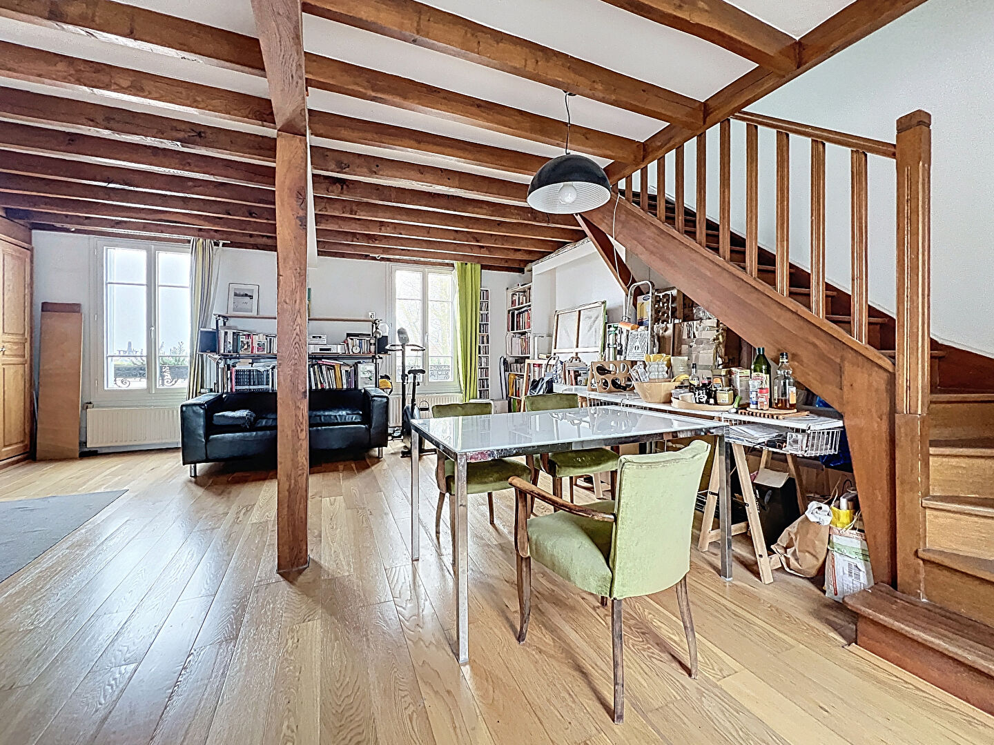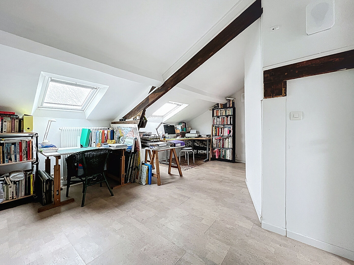Vue dégagée sur Pantin et Paris. Cheminée, double vitrage, Velux récents et chaudière gaz à condensation de 2022 complètent ses prestations.