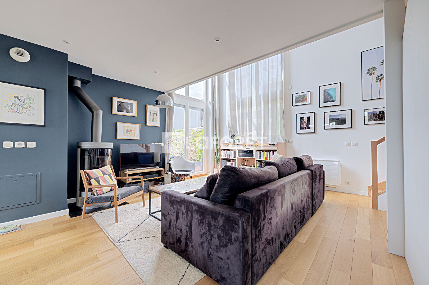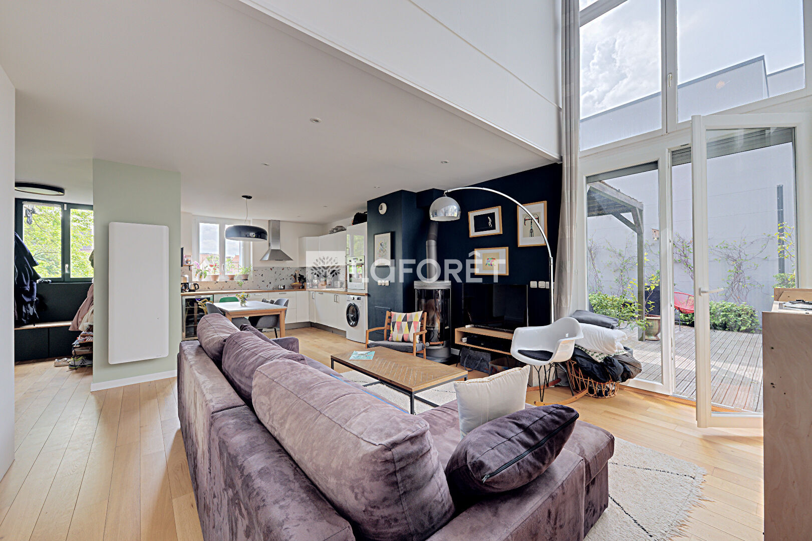 Il se compose d'un double séjour avec cuisine ouverte aménagée et équipée d'environ 36 m², très lumineux grâce au puit de lumière et ses grandes fenêtres prolongé par un accès direct à une magnifique terrasse de 35 m², sans vis-à-vis et ensoleillée. À l'étage, vous trouverez un espace bureau, deux chambres, une salle d'eau ainsi qu'un WC indépendant.