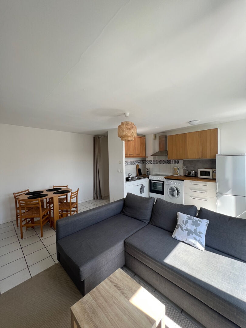 Un logement de type F2 MEUBLEE composé d'une entrée, un séjour, cuisine aménagée ouverte, une chambre, une salle d'eau avec WC. Un balcon.