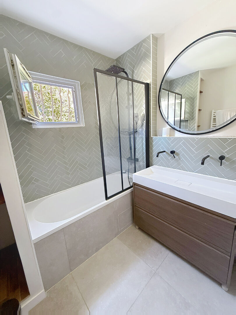 A l'étage : 3 chambres, SDB, WC suspendu. Ainsi qu'un Jardin + Box garage .