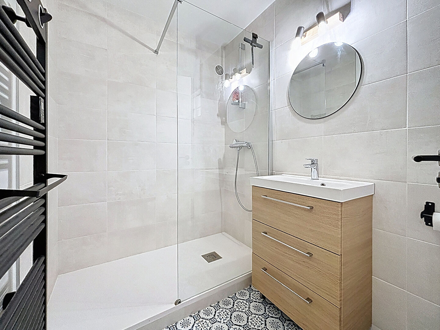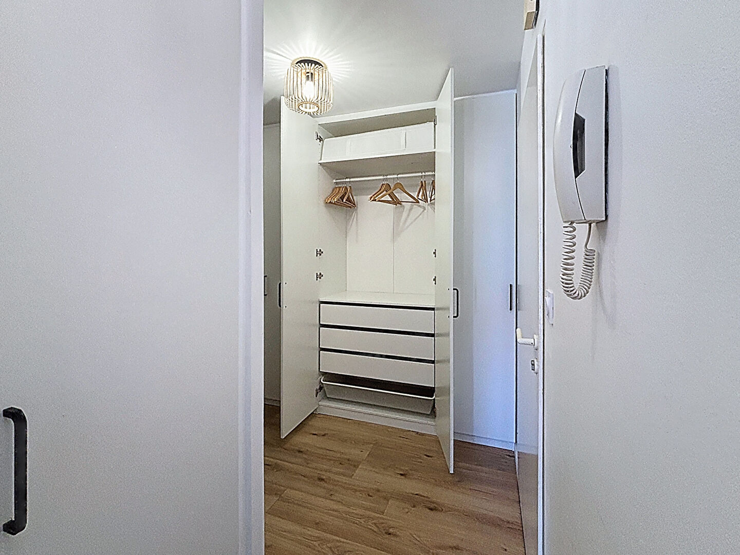 Au premier étage d'une résidence sécurisée avec un ascenseur, il se compose d'une large entrée avec placards, d'un dégagement qui dessert la pièce de vie avec cuisine équipée et d'une salle d'eau avec wc.