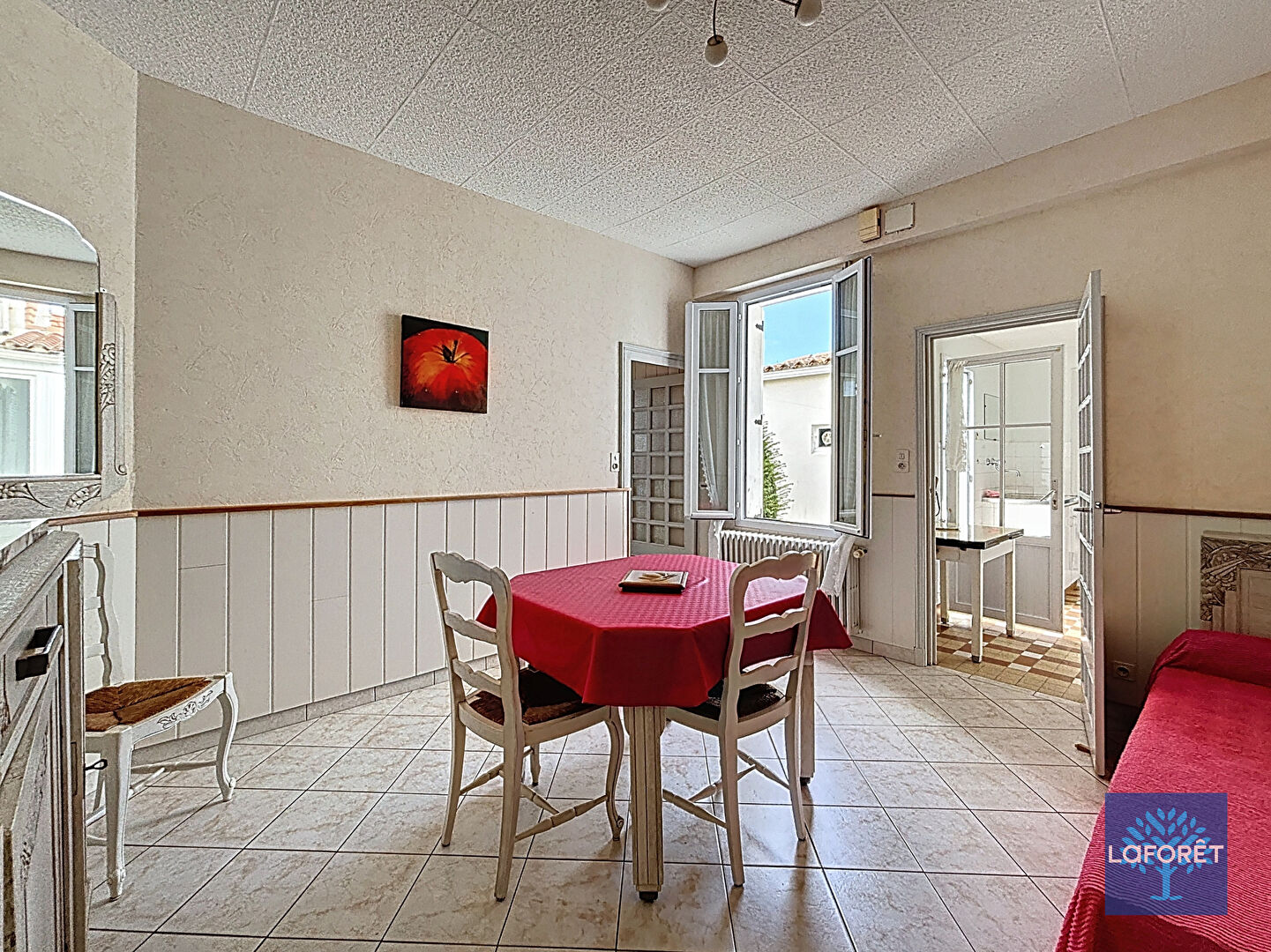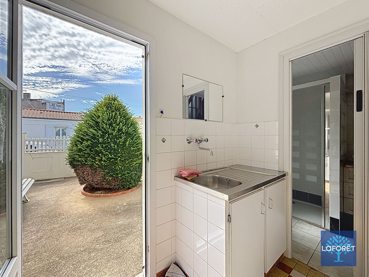 Sur deux niveaux elle propose au rez de chaussée une entrée, une pièce de vie donnant sur une cuisine lumineuse et ouverte vers l'extérieur, une chambre spacieuse, une salle d'eau, un coin buanderie et un wc indépendant. A l'étage, une pièce servant de chambre.