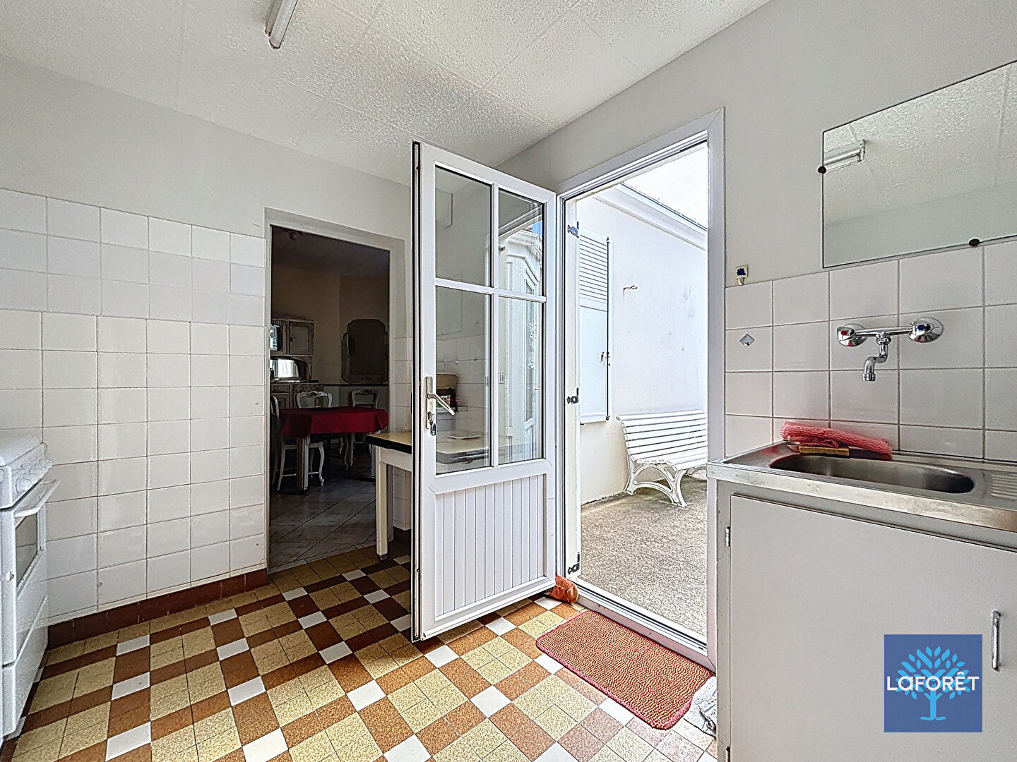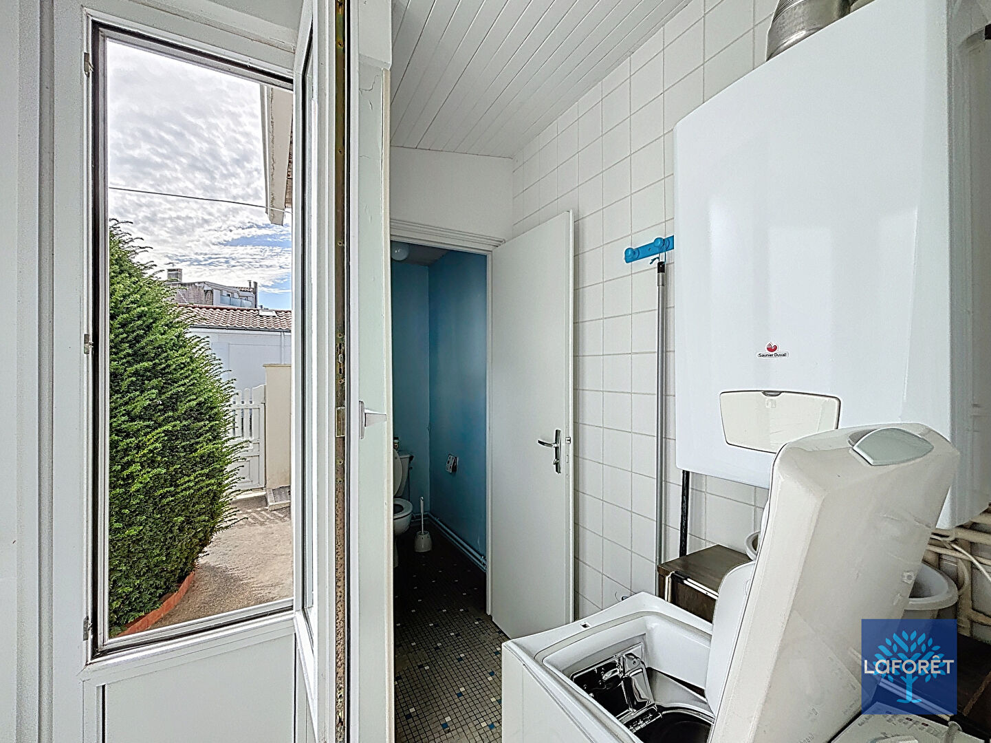 Un toilette et un puit se trouvent sur la terrasse.