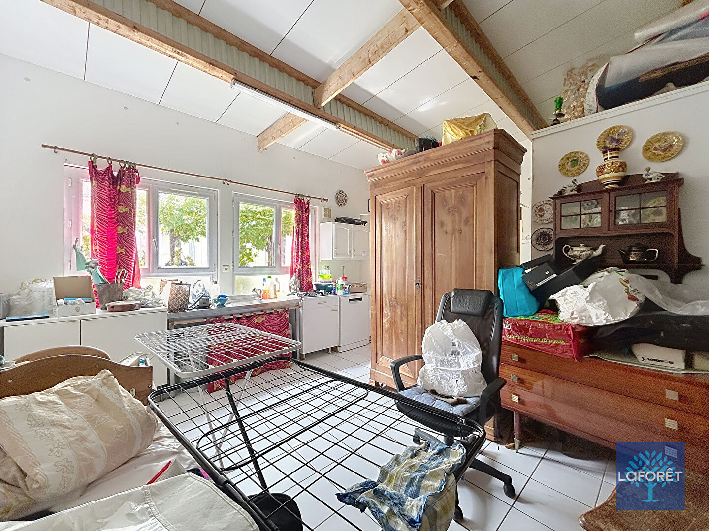 L'intérieur se compose d'un séjour, de deux chambres, d'une salle d'eau avec WC, d'une cuisine avec arrière-cuisine et de plusieurs espaces annexes. Un grand atelier, parfait pour un usage professionnel, un bureau ou un projet artistique, ainsi que deux garages, dont un avec mezzanine, complètent l'ensemble.