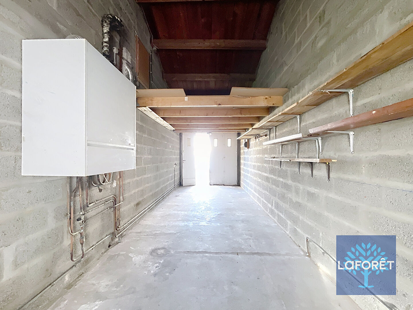 Elle se compose d'une entrée, un salon-séjour, une cuisine, un WC, une salle d'eau, trois chambres, ainsi qu'un garage. Devant la maison, un beau jardinet avec du stationnement. A l'arrière, un beau jardin exposé sud à l'abri des regards.