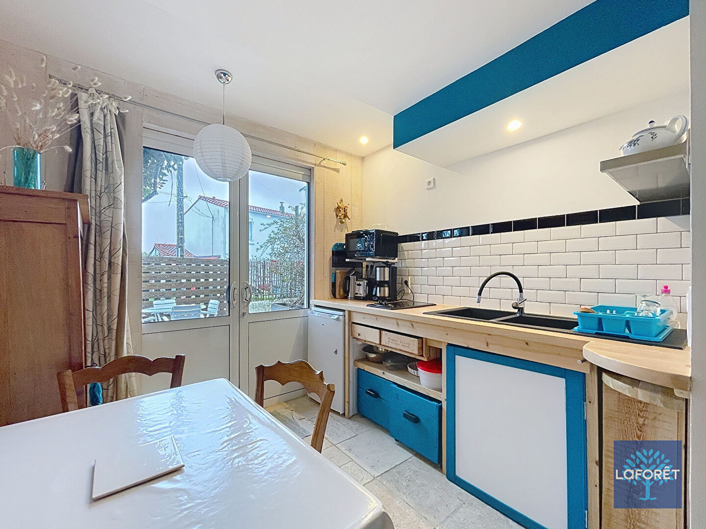 La seconde partie de la maison dispose d'un accès indépendant, donnant l'opportunité d'être loué. Elle comprend un séjour avec cuisine aménagée et équipée, une salle d'eau avec WC, ainsi que deux chambres à l'étage, chacune disposant de sa mezzanine.