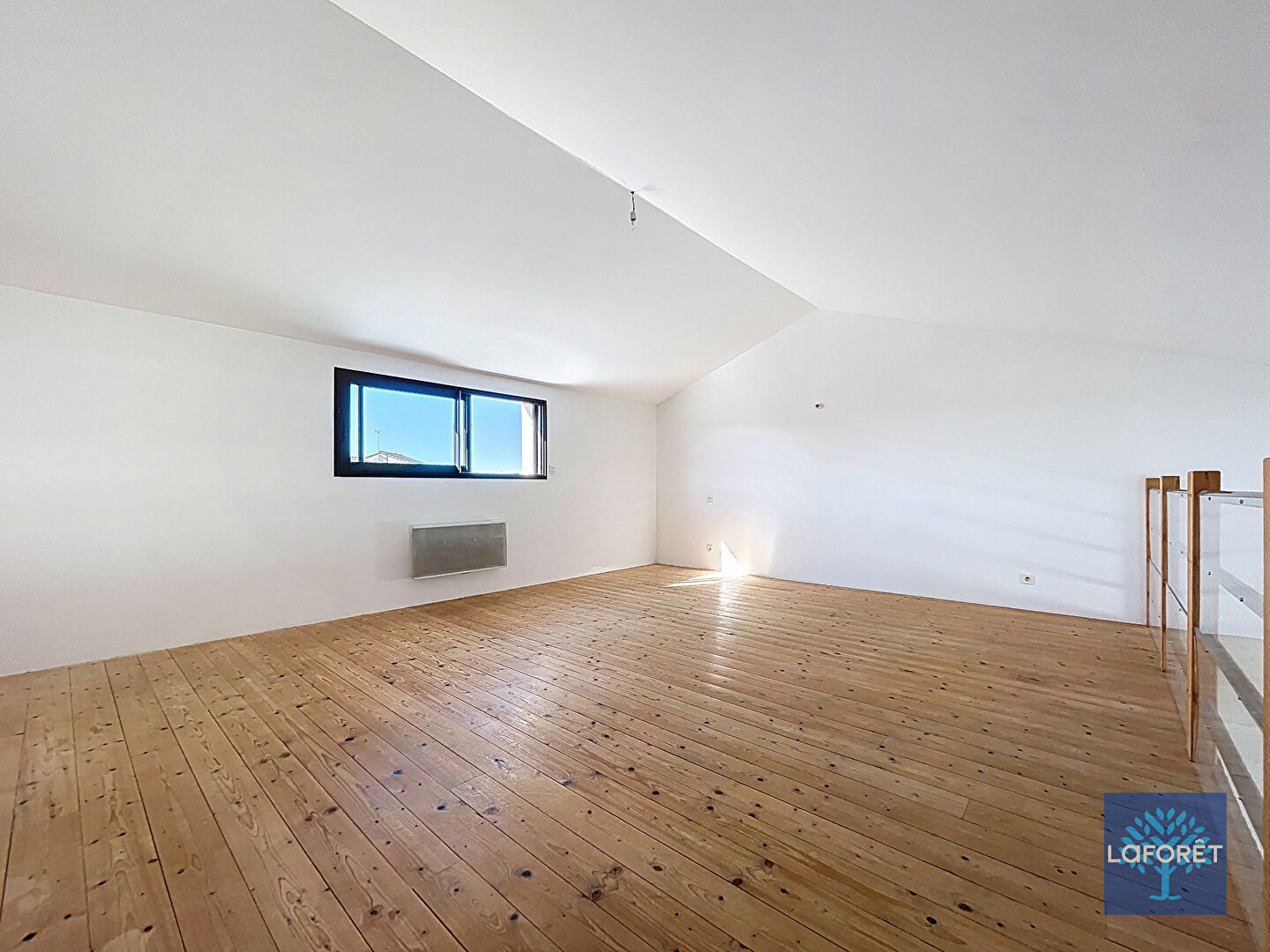 A l'intérieur, une grande pièce de vie lumineuse, une cuisine aménagée, un cellier, deux chambres, une salle d'eau, un WC, une pièce en mezzanine de 27m² et un garage.
