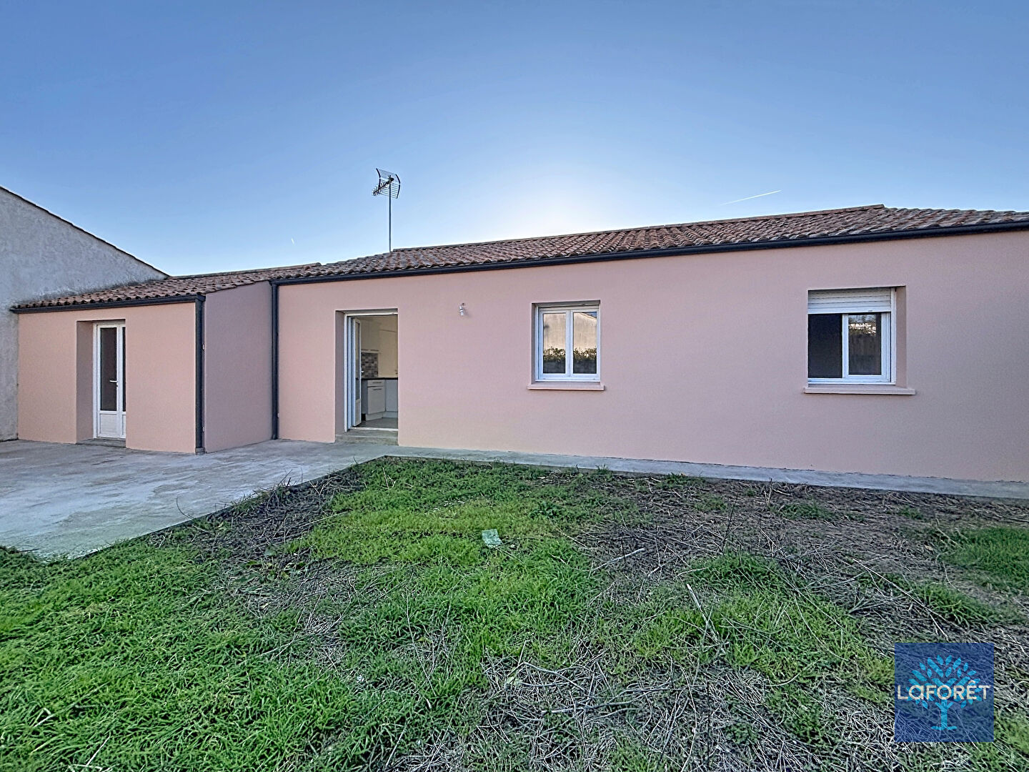 La maison se compose d'une pièce de vie lumineuse grâce à ses trois expositions (est, ouest et sud), d'une cuisine aménagée, de trois chambres, d'une salle d'eau et d'un wc indépendant. Depuis la cuisine un accès sur la terrasse et le jardin.