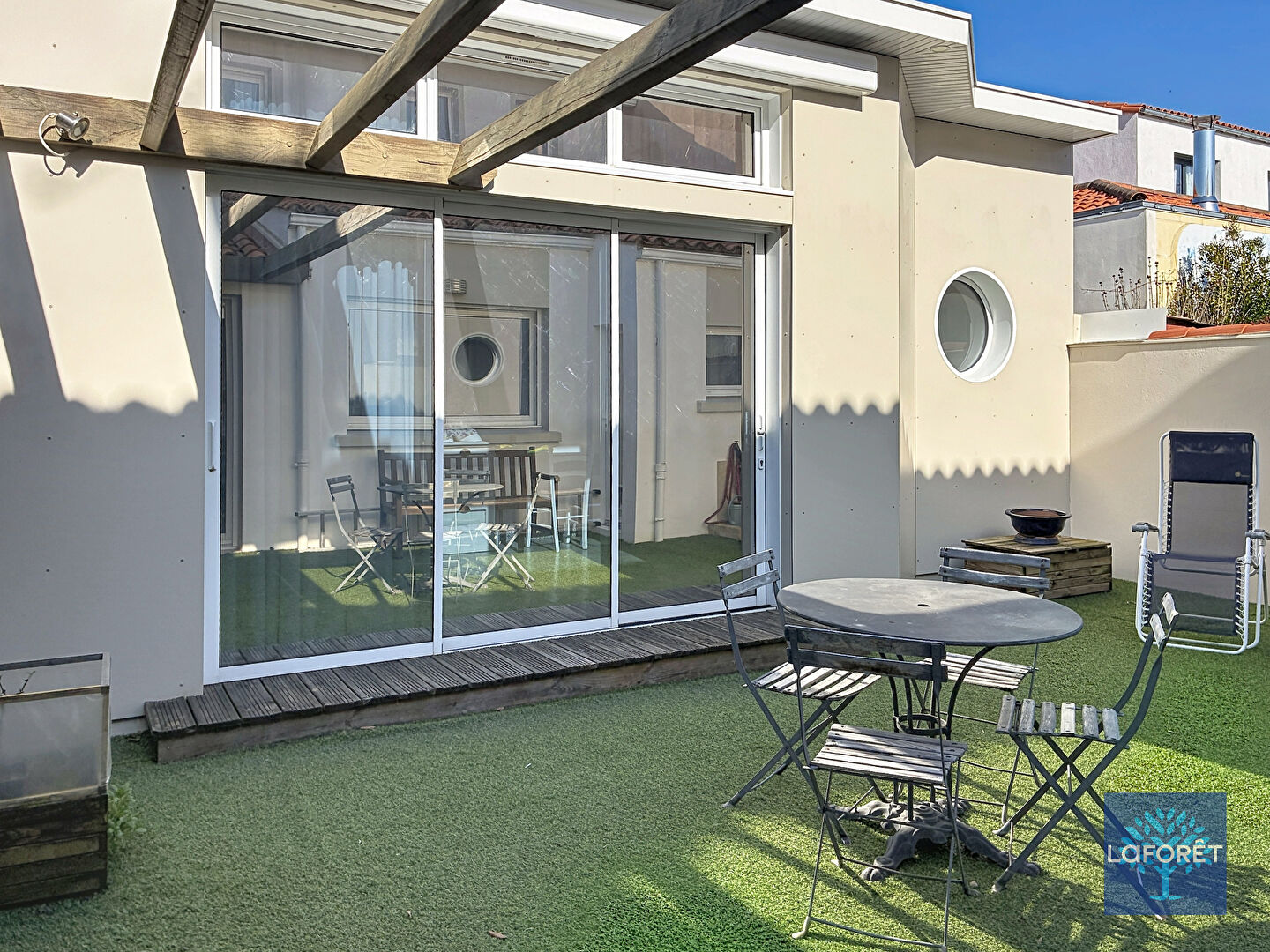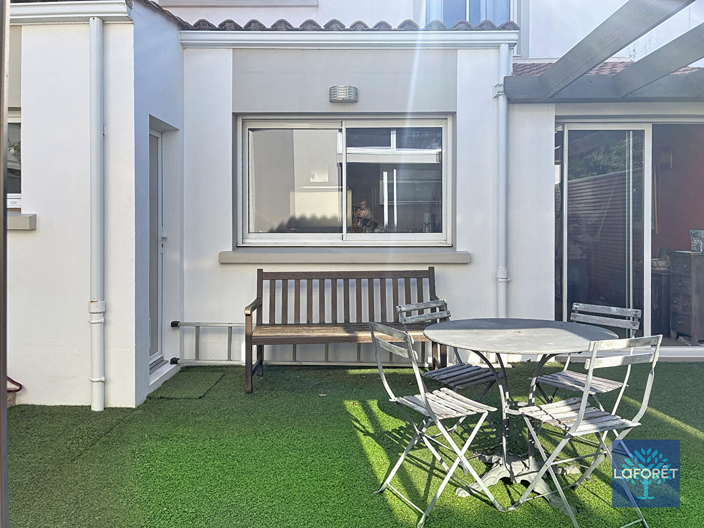 La dépendance ouvrant sur la cour offre un bel espace de vie séparé avec une une chambre et salle d'eau pour accueillir les proches.