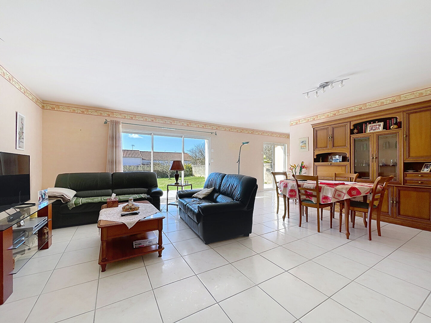 Dotée d'une superficie habitable de 107 m², elle se compose d'une entrée avec placard, une grande pièce de vie exposée sud, une cuisine aménagée et équipée, quatre chambres, deux salles d'eau dont une avec wc, un buanderie et un garage traversant de 29 m².
