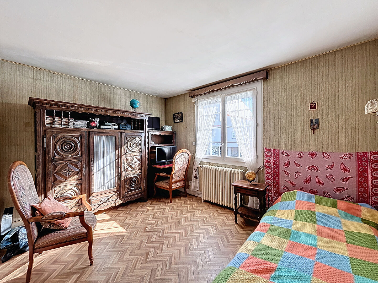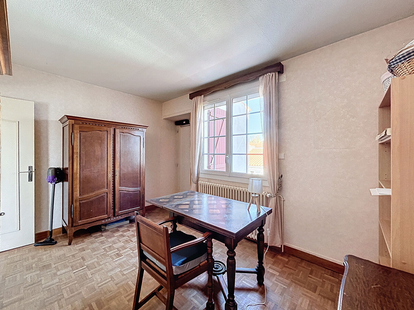 - à l'étage, une cuisine, un séjour, deux chambres, une salle de bains et un WC.