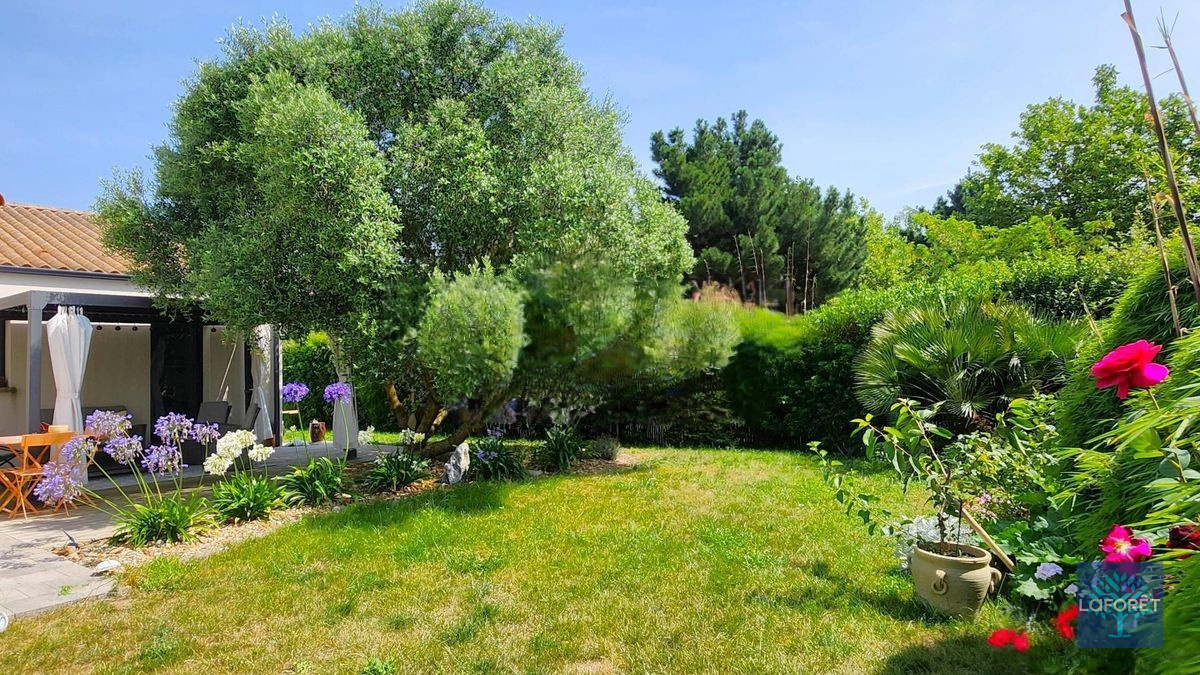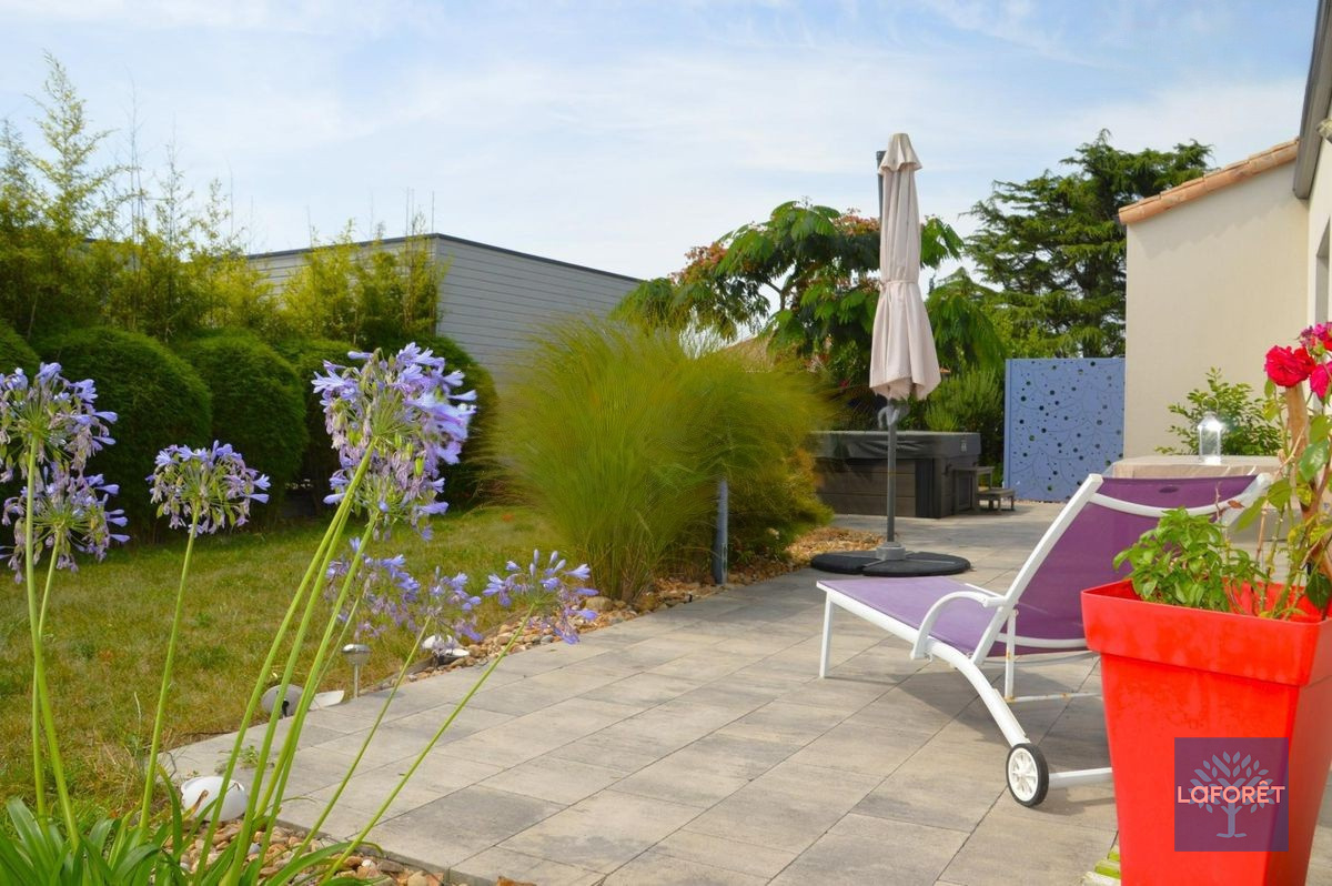 A l'extérieur, plusieurs places de stationnement, une terrasse avec pergola bioclimatique donnant sur un magnifique jardin arboré exposé sud.