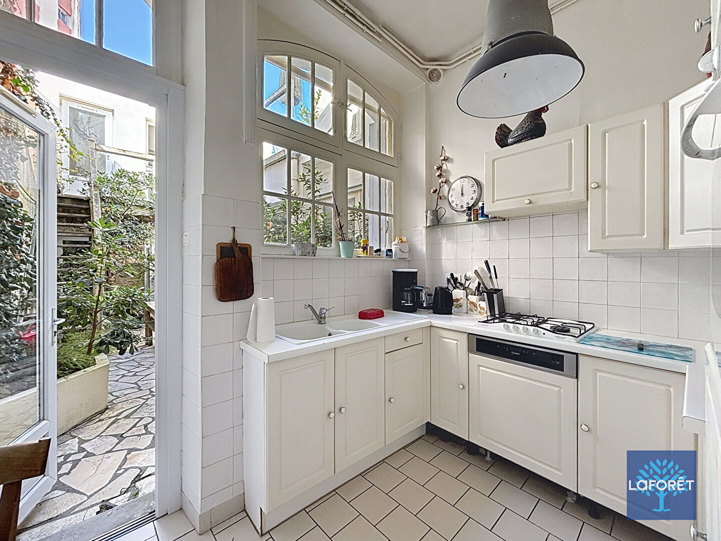 La terrasse intime prolonge la douceur de vivre qu'offre cette demeure. Un solarium au premier étage permet de profiter du soleil aux beaux jours. Un espace rare et précieux en ville.