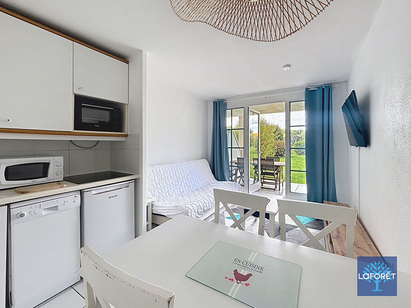 Au rez de chaussée d'une résidence entretenue, il se compose d'une large entrée avec un coin chambre, d'une pièce de vie avec cuisine équipée donnant sur l terrasse abritée avec vue dégagée et d'une salle de bains avec wc.