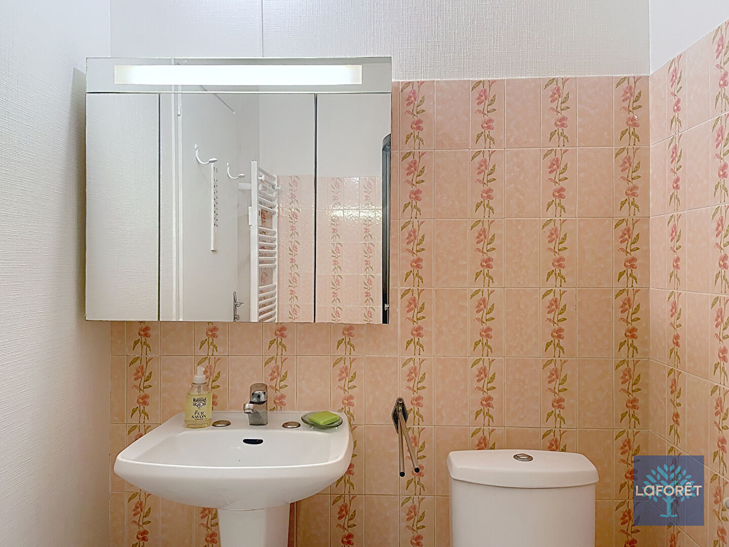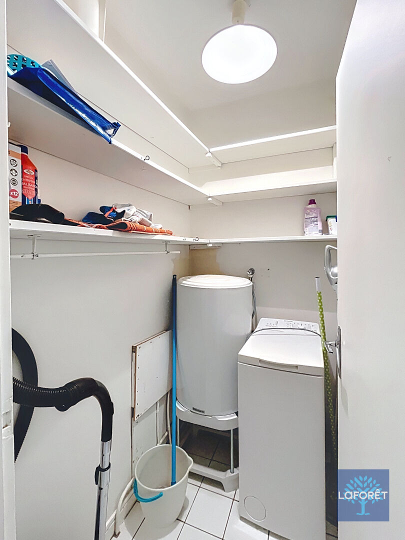 Cet appartement comprend une pièce principale avec cuisine aménagée et équipée (hotte, plaque de cuisson, mini-four, four à micro-ondes), une salle d'eau avec wc, un cellier avec lave-linge. Ce logement est loué avec un emplacement de parking privatif dans la résidence !
