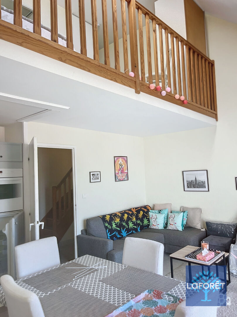 Au premier niveau, il comprend une entrée, un agréable salon-séjour avec coin cuisine et un balcon, une salle d'eau avec wc. A l'étage, une salle de bains avec wc, une chambre et couchage en mezzanine . Une cave en sous-sol.