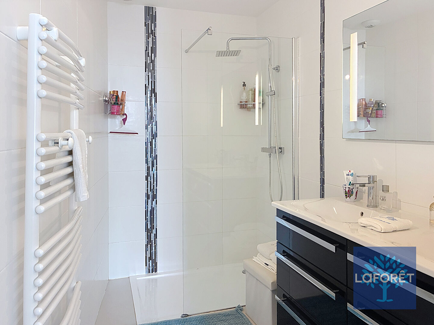 La partie nuit se compose de deux chambres avec salle d'eau privative et d'une sortie sur la terrasse solarium. L'appartement est équipé d'un ascenseur privatif et dispose d'un garage double et d'un stationnement extérieur.