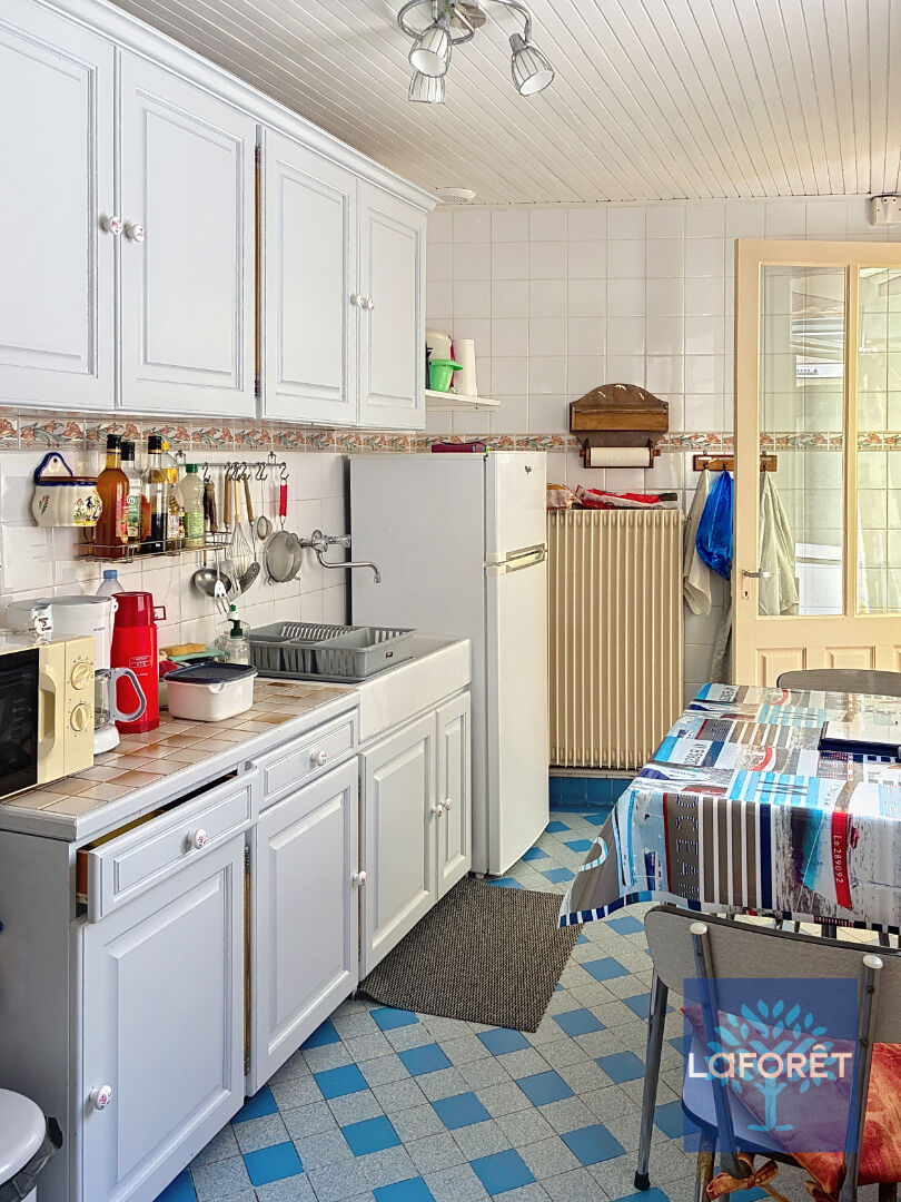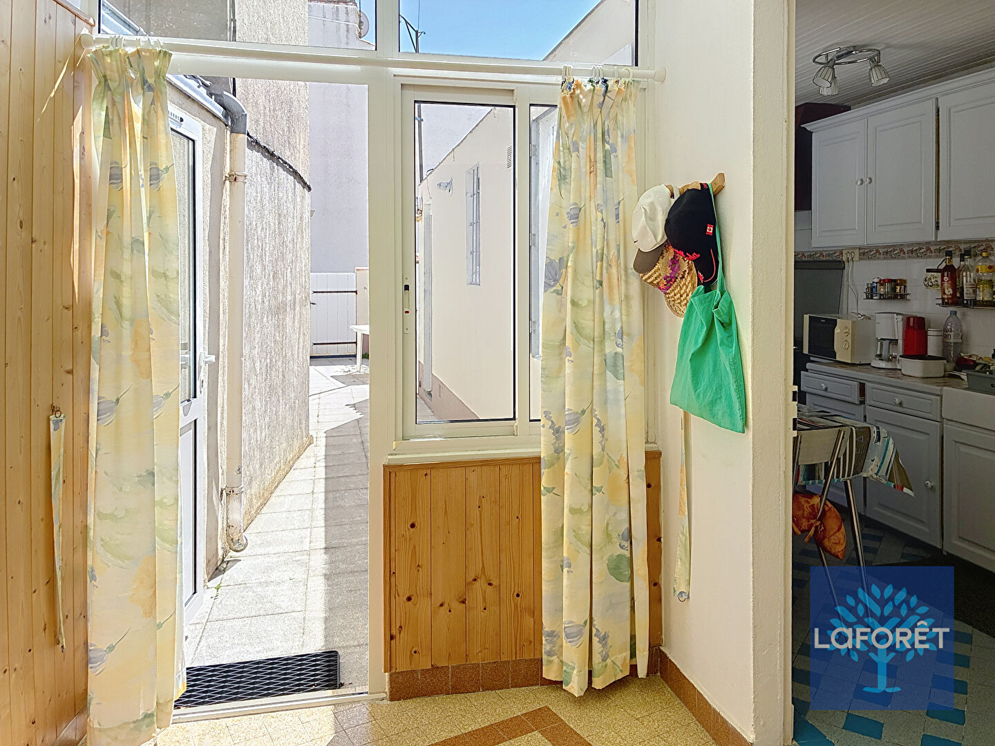 On y entre par un petite véranda qui distribue le séjour et la cuisine, salle d'eau, à l'étage une grande chambre, buanderie dans la cour.