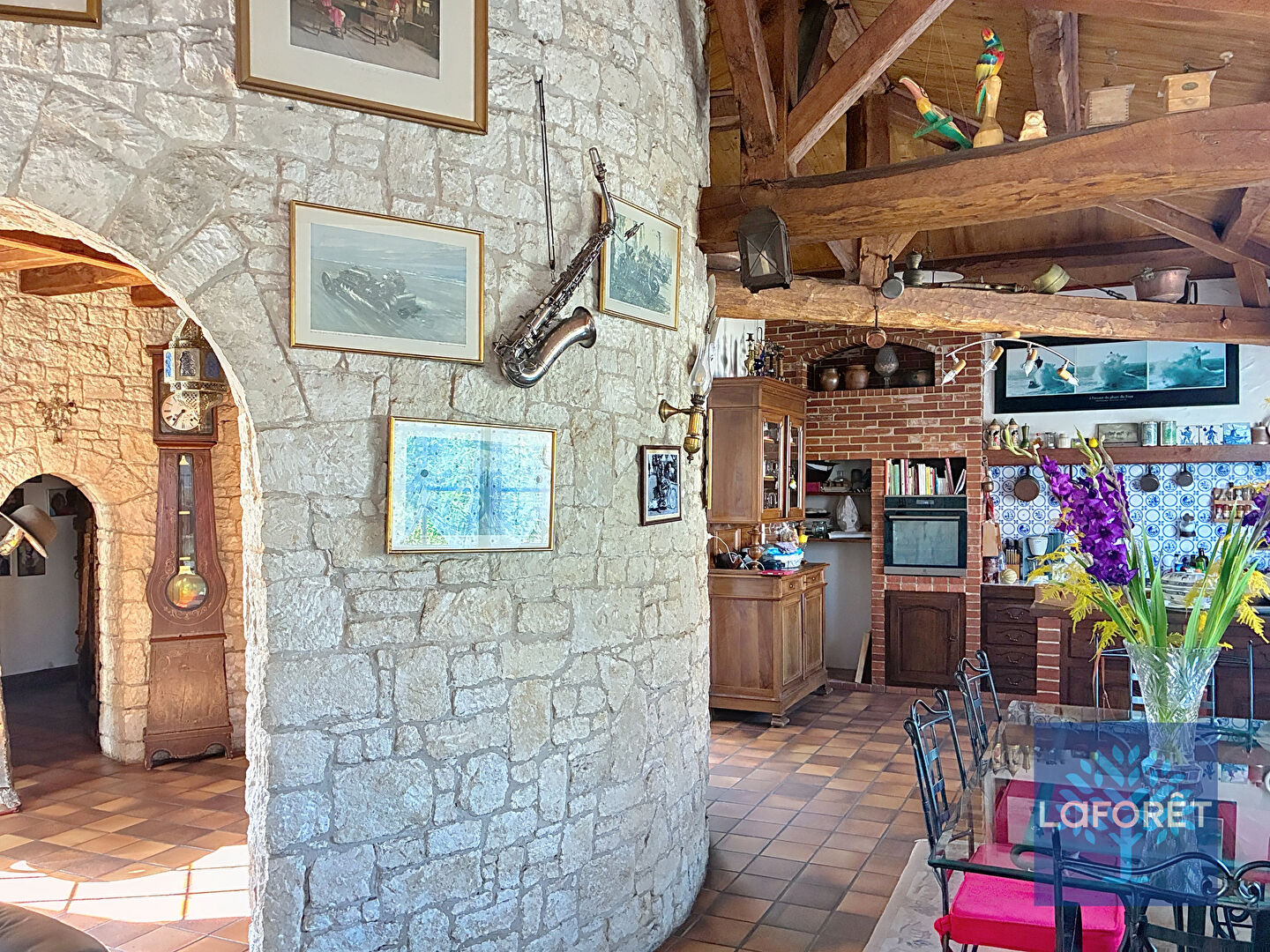 Construite sur une parcelle de 741m2 orientée Sud, elle se compose d'une belle pièce de vie pleine charme et avec poutres apparentes et cheminée, ouvrant sur la terrasse 3 chambres, 2 salles d'eau. Vous découvrirez également l'ambiance secrète de sa tourelle construite en pierres faisant un lieu parfait pour un atelier ou un bureau.