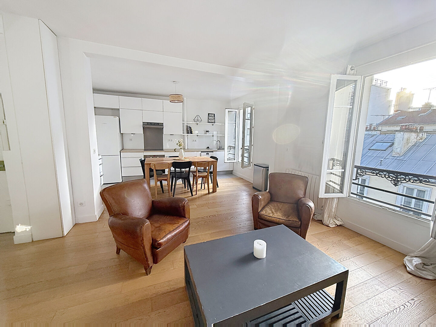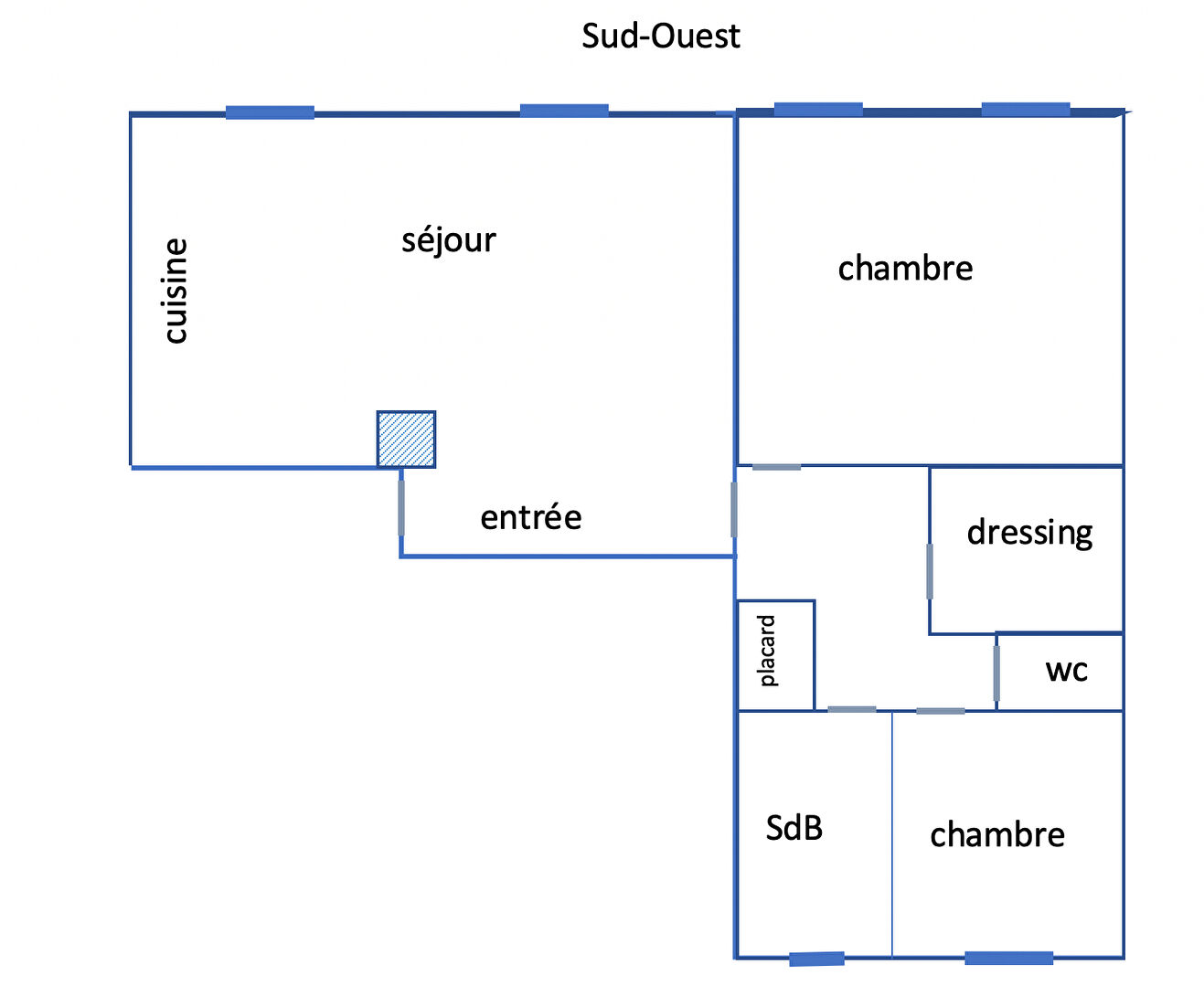 Situé en étage élevé dans un immeuble ancien, cet appartement vous séduira par son grand séjour lumineux avec cuisine américaine, exposé plein sud.