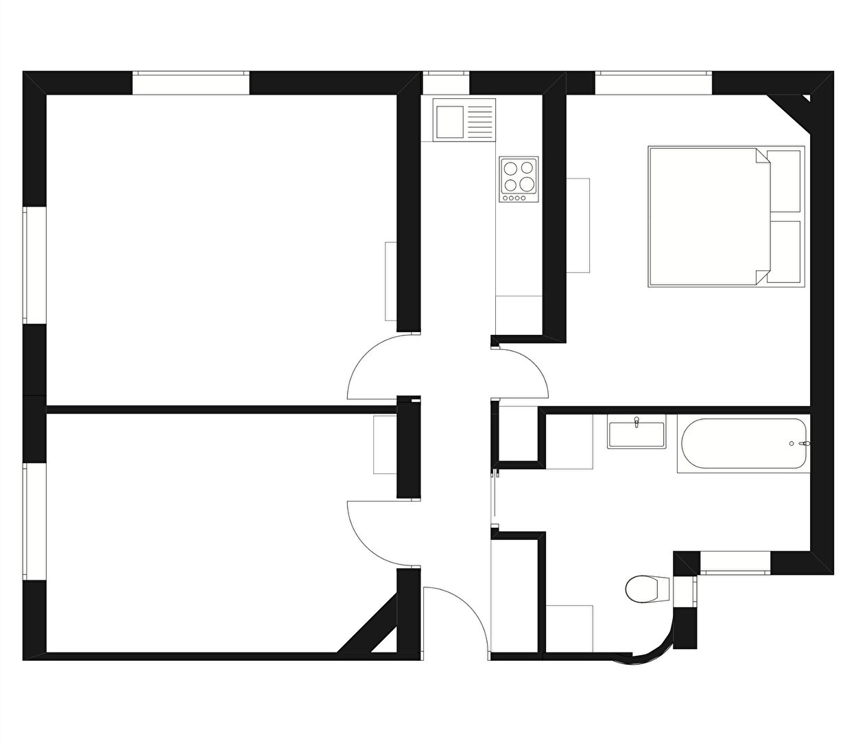 Une cuisine aménagée, Une salle de bains avec fenêtre, un wc séparé.