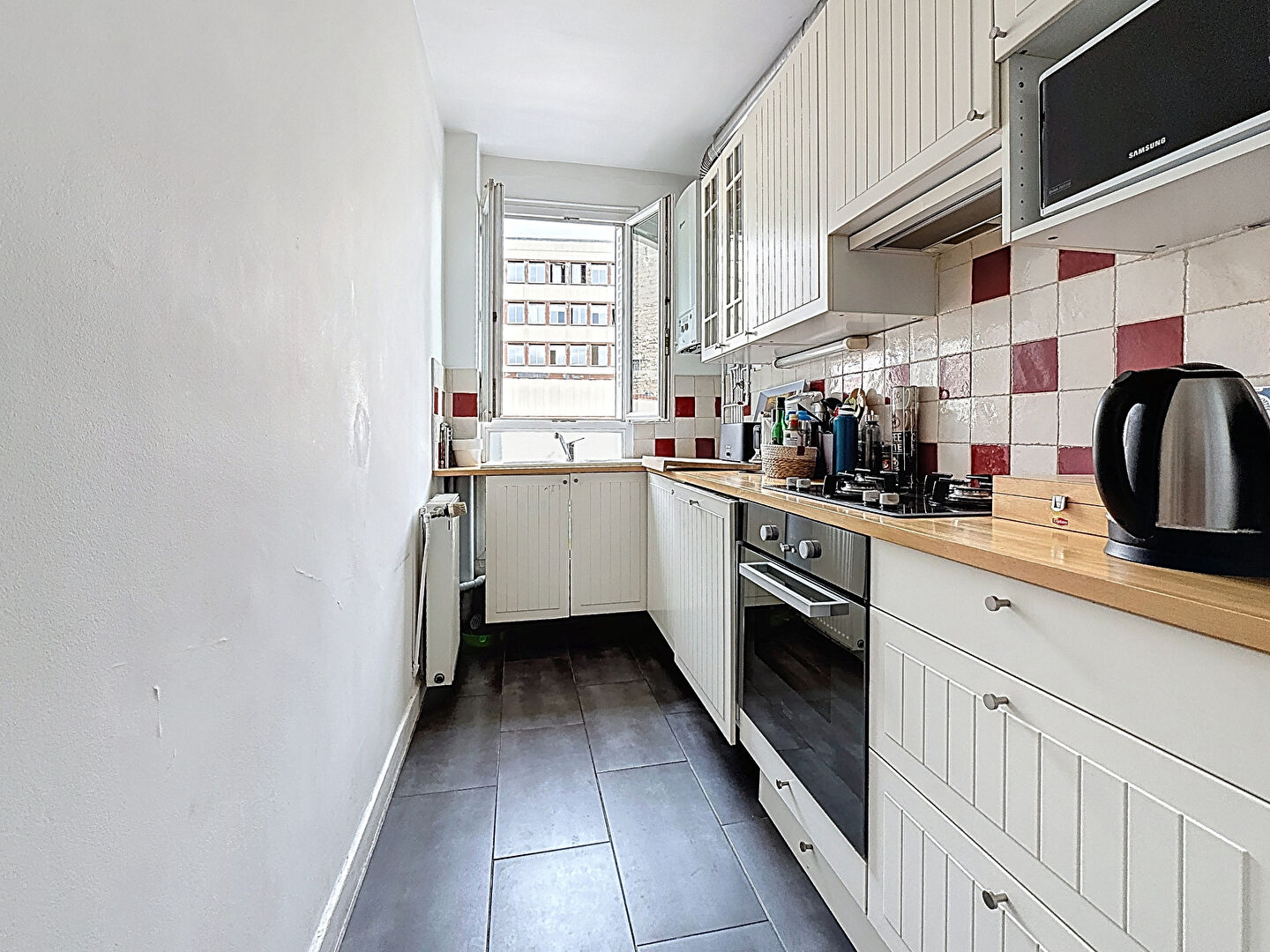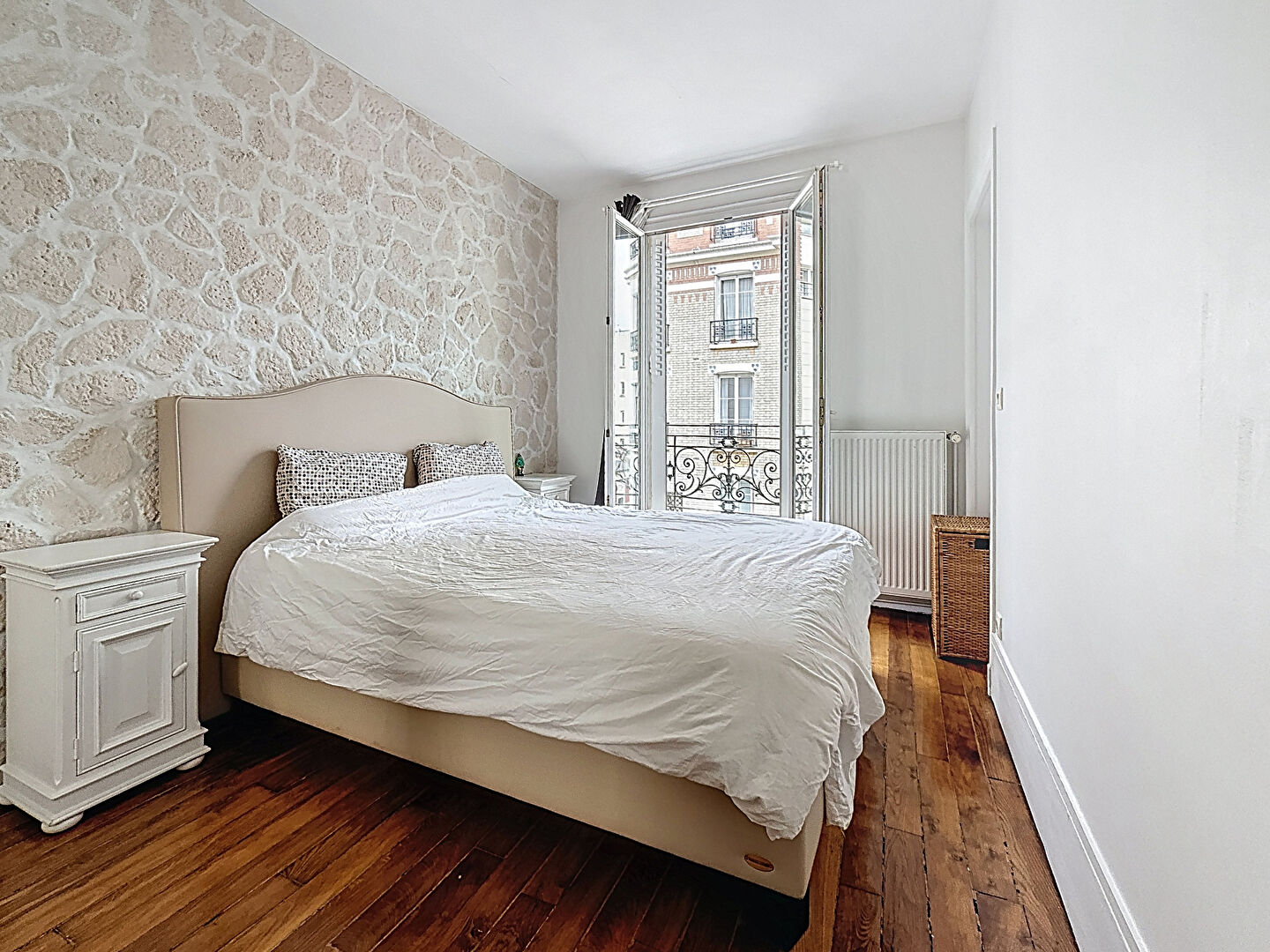 Niché dans un immeuble ancien, ce bien offre un bel espace de vie, une cuisine séparée aménagée, deux chambres lumineuses, ainsi qu'une salle d'eau avec WC. Le parquet, la cheminée et la belle hauteur sous plafond apportent toute la chaleur et le cachet de l'ancien.