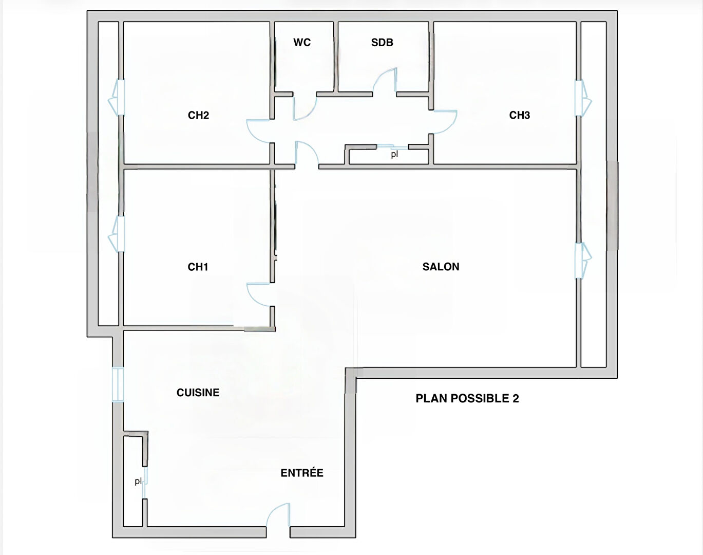 L'appartement comprend également une salle d'eau, des toilettes séparées, et deux chambres confortables avec possibilité d'en créer une troisième.
