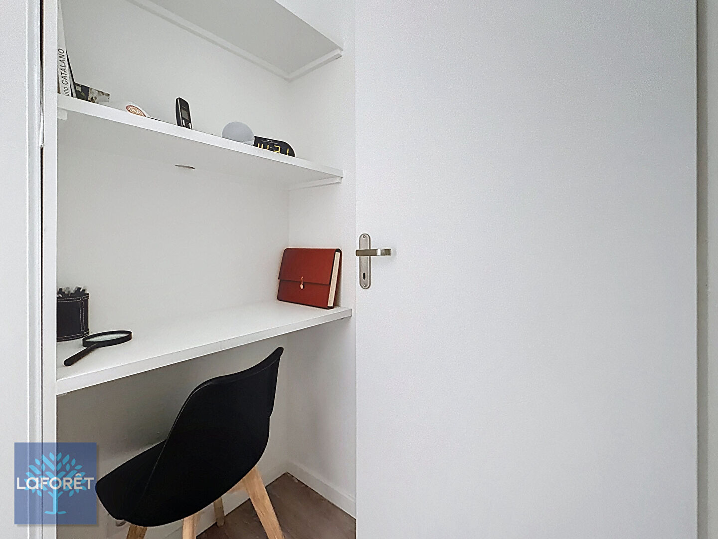 - Au 1er étage Une chambre avec coin bureau et SDE avec colonne de douche, WC et sèche serviette.