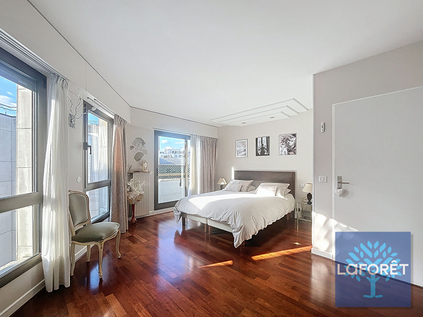 Duplex de 144,83m2 carrez en parfait état et refait avec goût. Quoi de mieux qu'une terrasse plein ciel de 45m2 exposé Est/Ouest et une vue dégagée sur la Défense ainsi que 2 balcons.