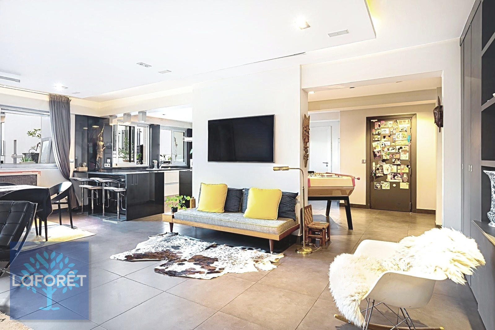 Un espace rare à Levallois avec une grande cuisine ouverte équipée d'électroménager Gaggenau de haute qualité. Elle s'ouvre sur une triple réception dotée d'un système home cinéma Bose avec écran et vidéoprojecteur.