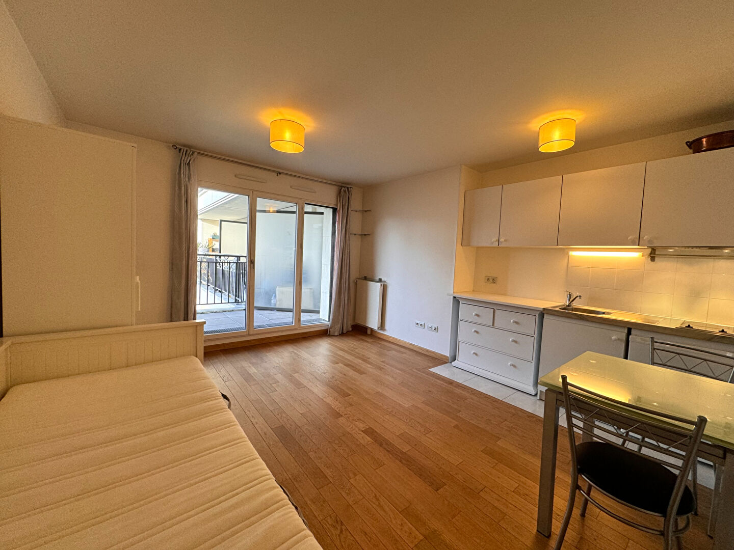 Dans un immeuble de 2016, au 4e étage avec ascenseur, un studio très lumineux comprenant pièce de vie, kitchenette, salle d'eau avec WC. Balcon.