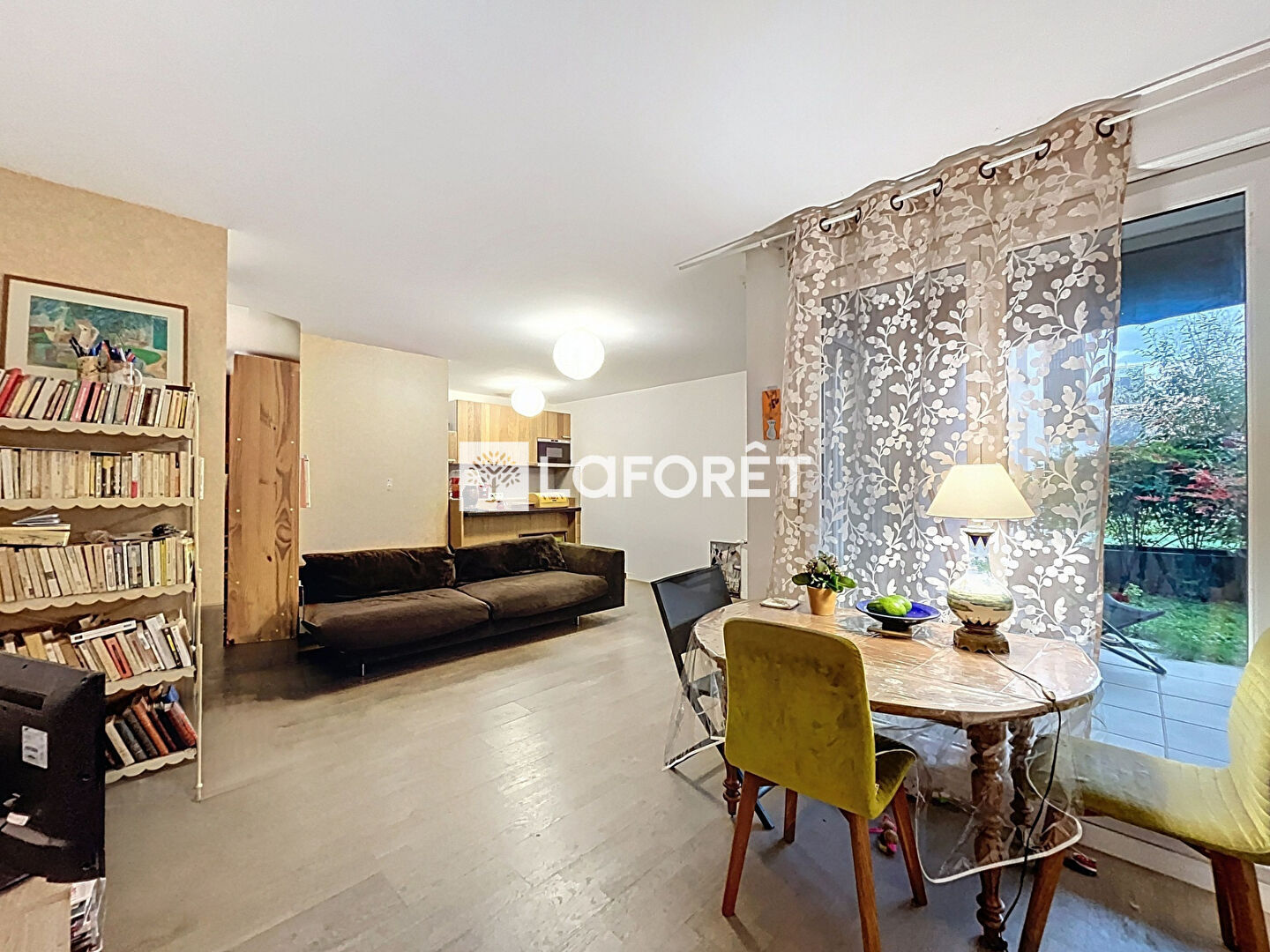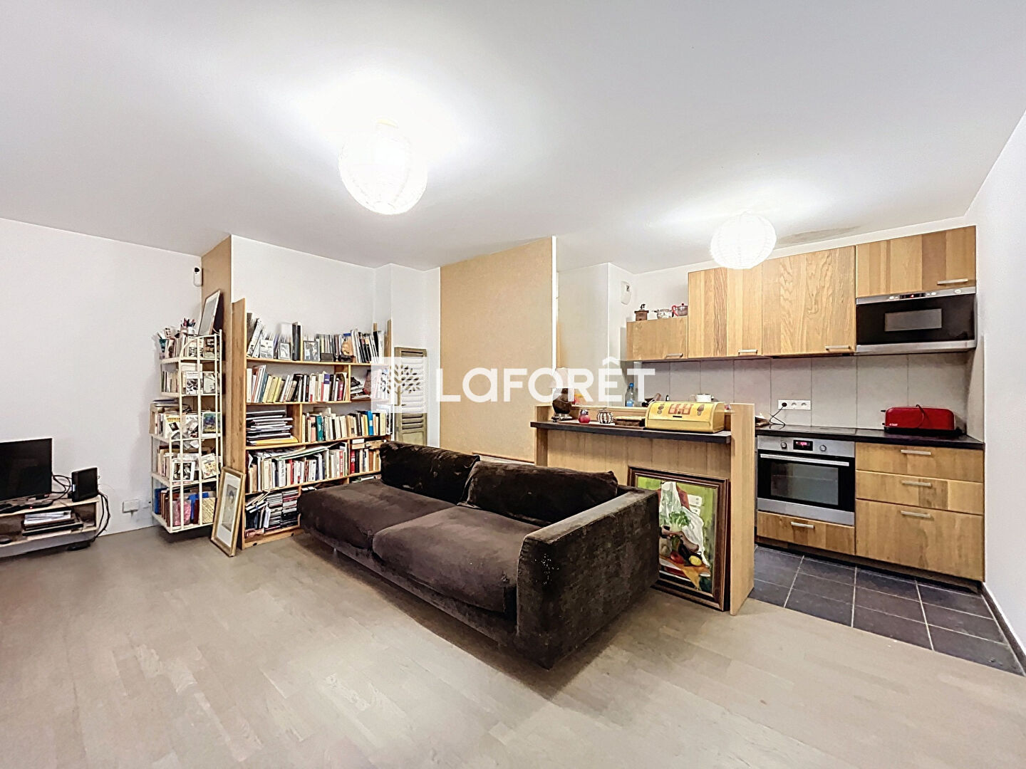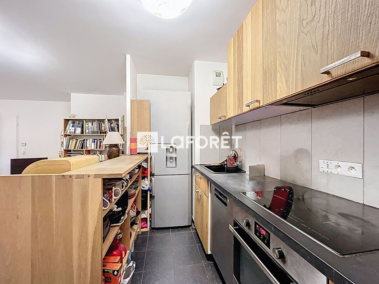 Le séjour lumineux avec cuisine ouverte entièrement équipée est séparé du hall d'entrée par une porte, apportant un réel confort d'usage.