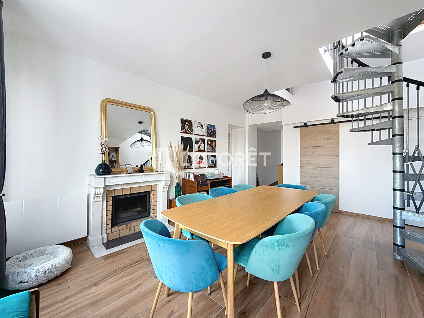 Ce bien unique se distingue par une grande salle à manger agrémentée d'une cheminée, un vaste séjour baigné de lumière et une cuisine conviviale permettant de prendre les repas sur place.