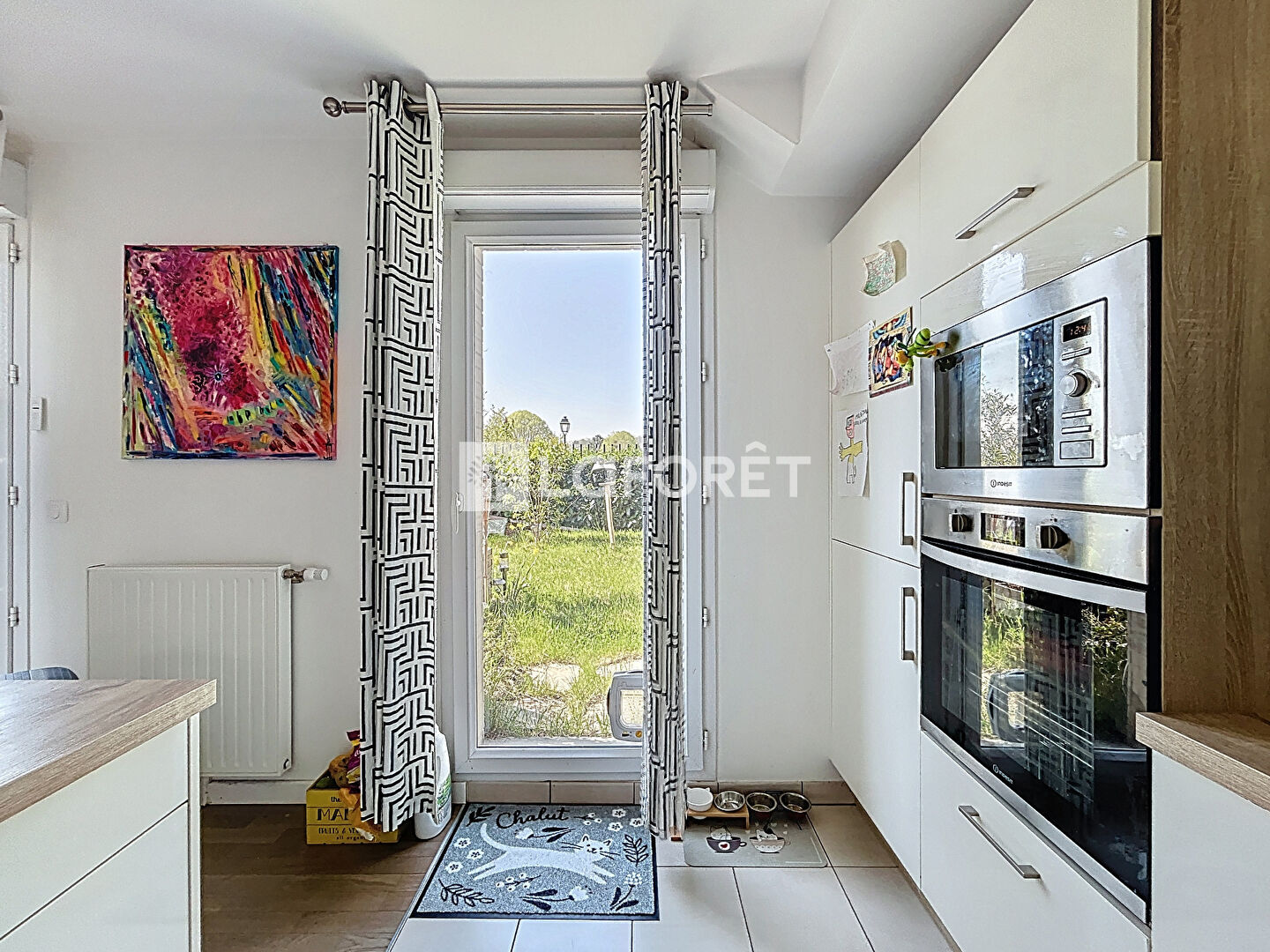 Le séjour s'ouvre sur un jardin privatif de 70 m², exposé plein sud, avec terrasse aménagée, store banne électrique et espace extérieur clôturé, idéal pour profiter pleinement des journées ensoleillées en toute intimité.