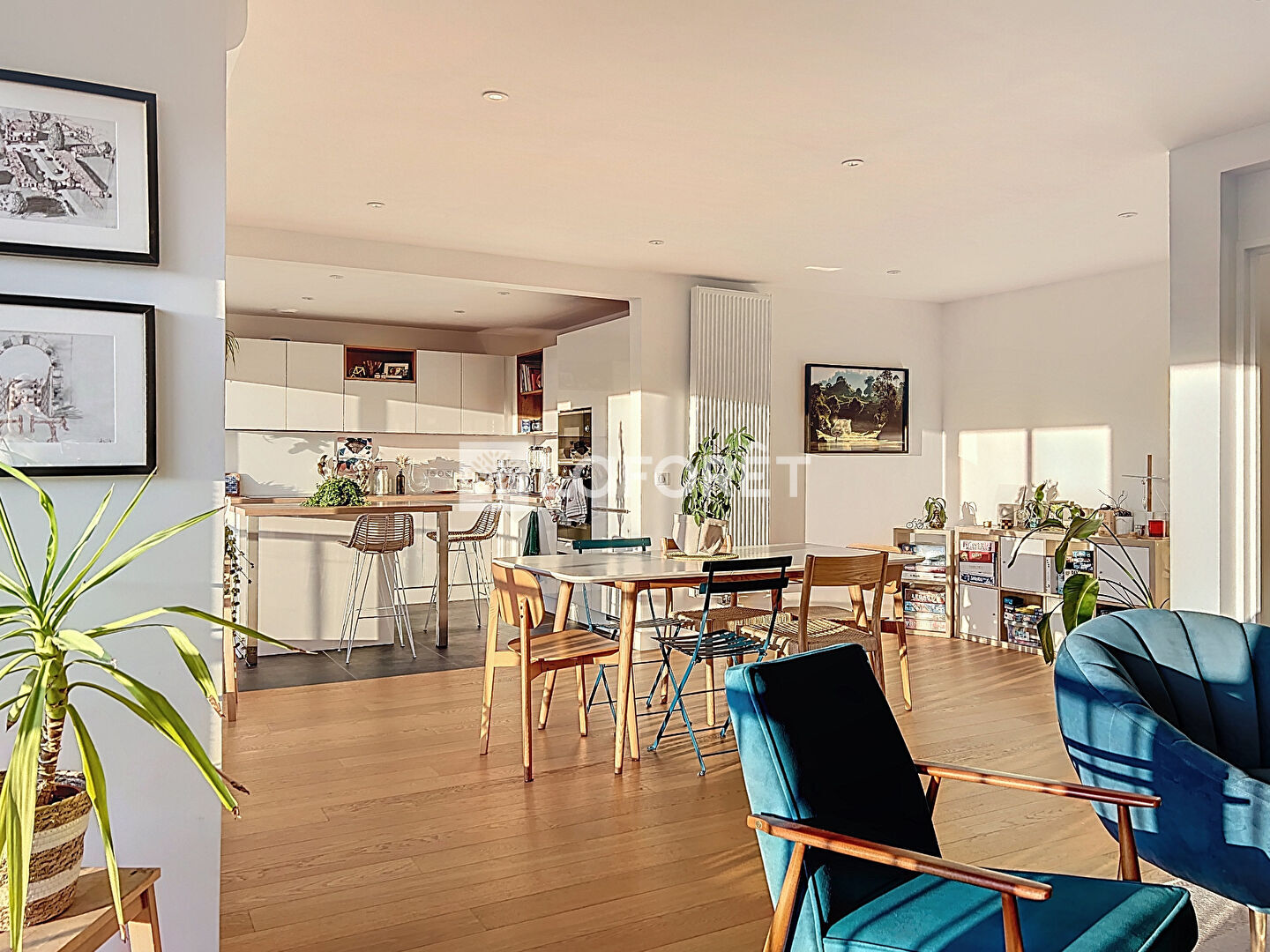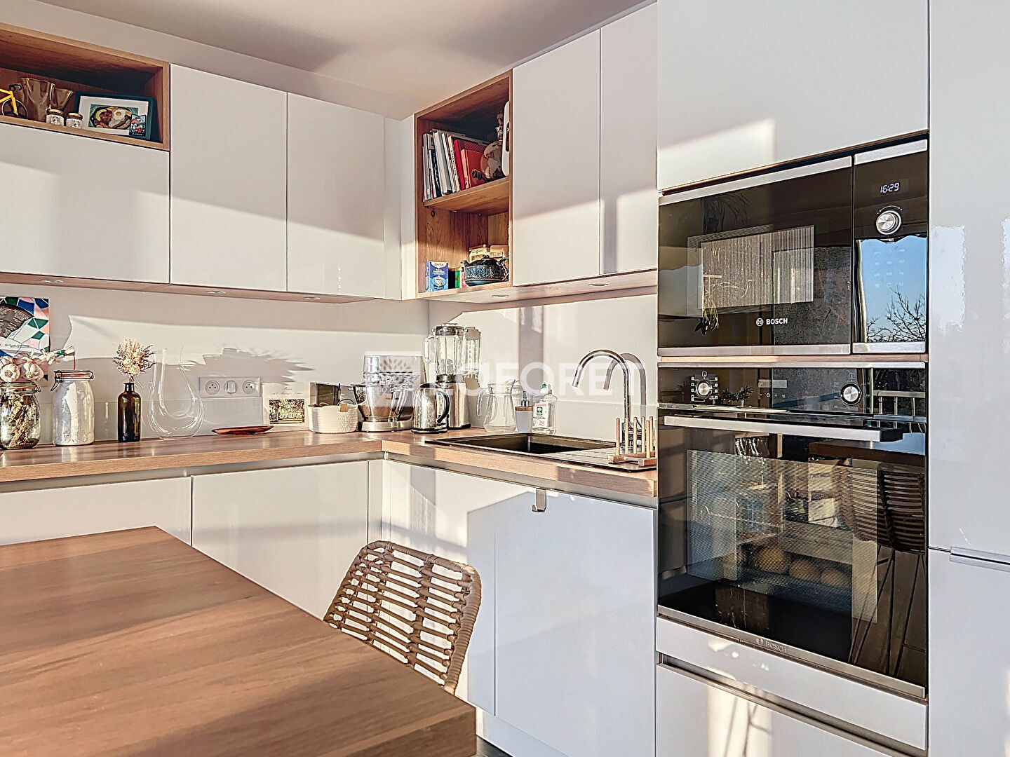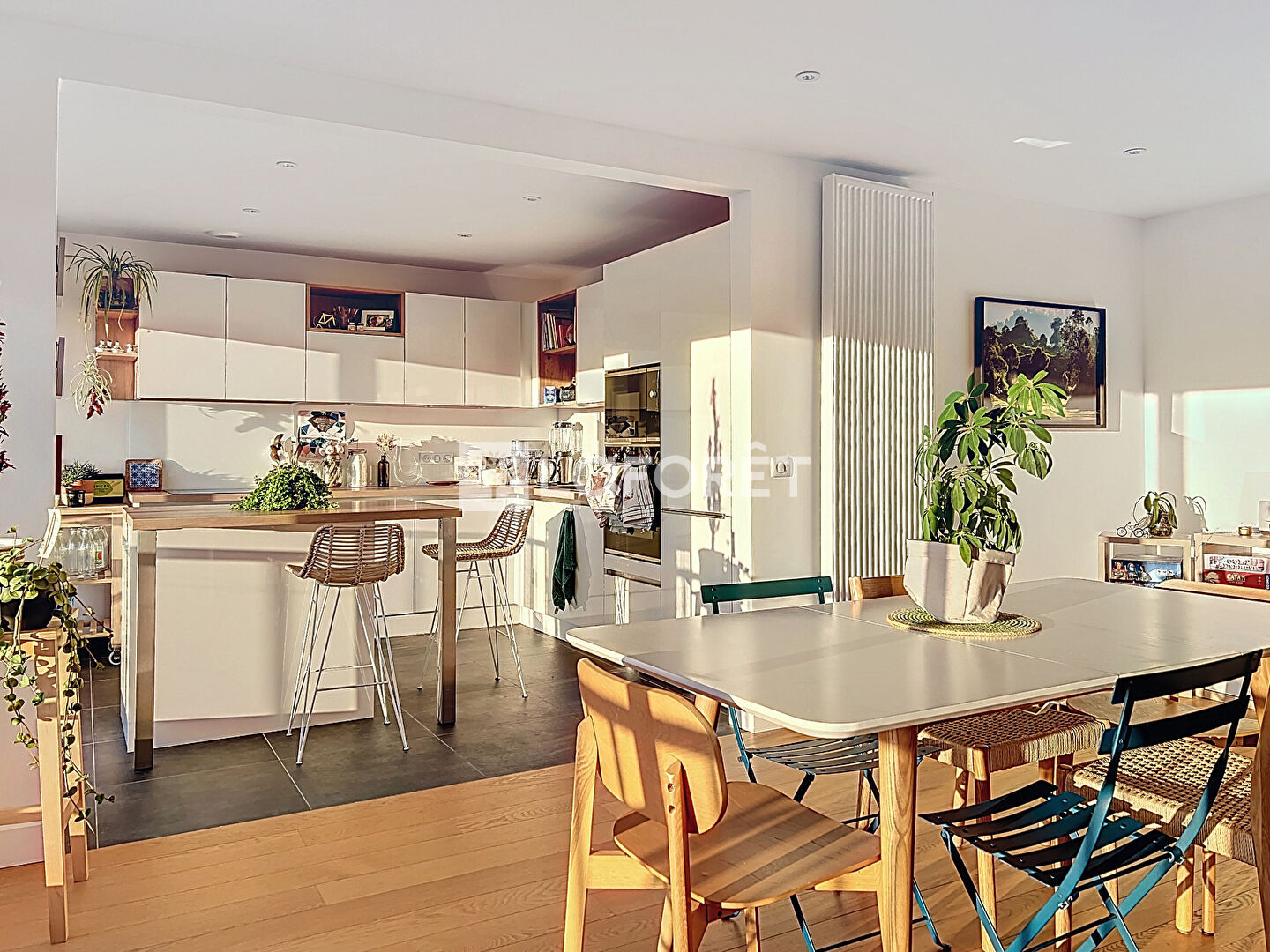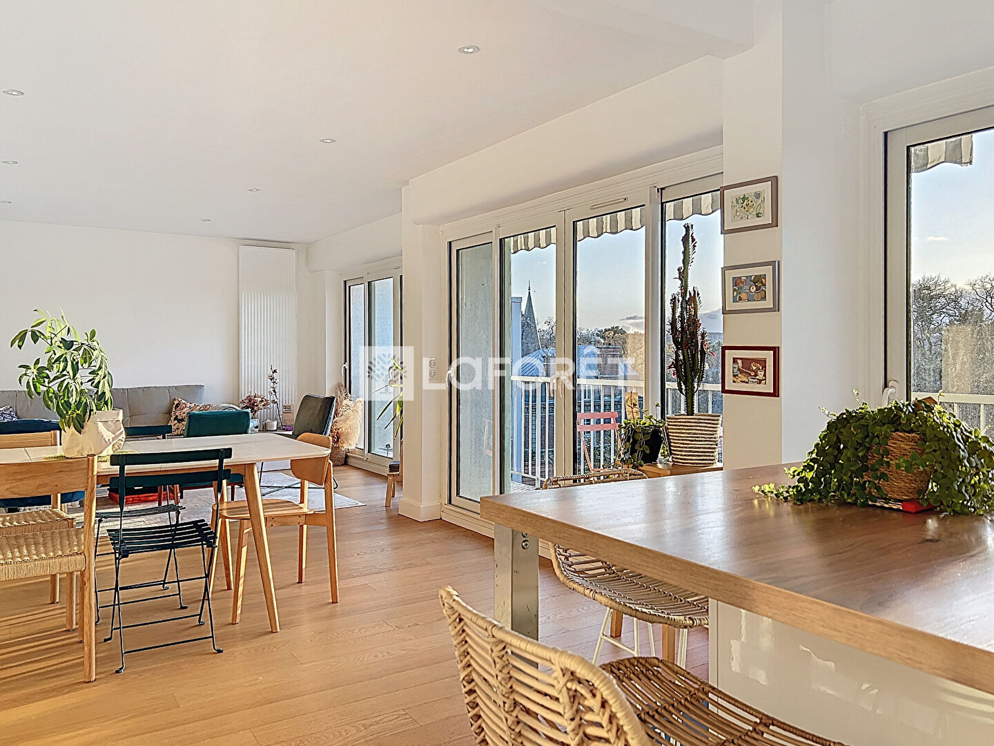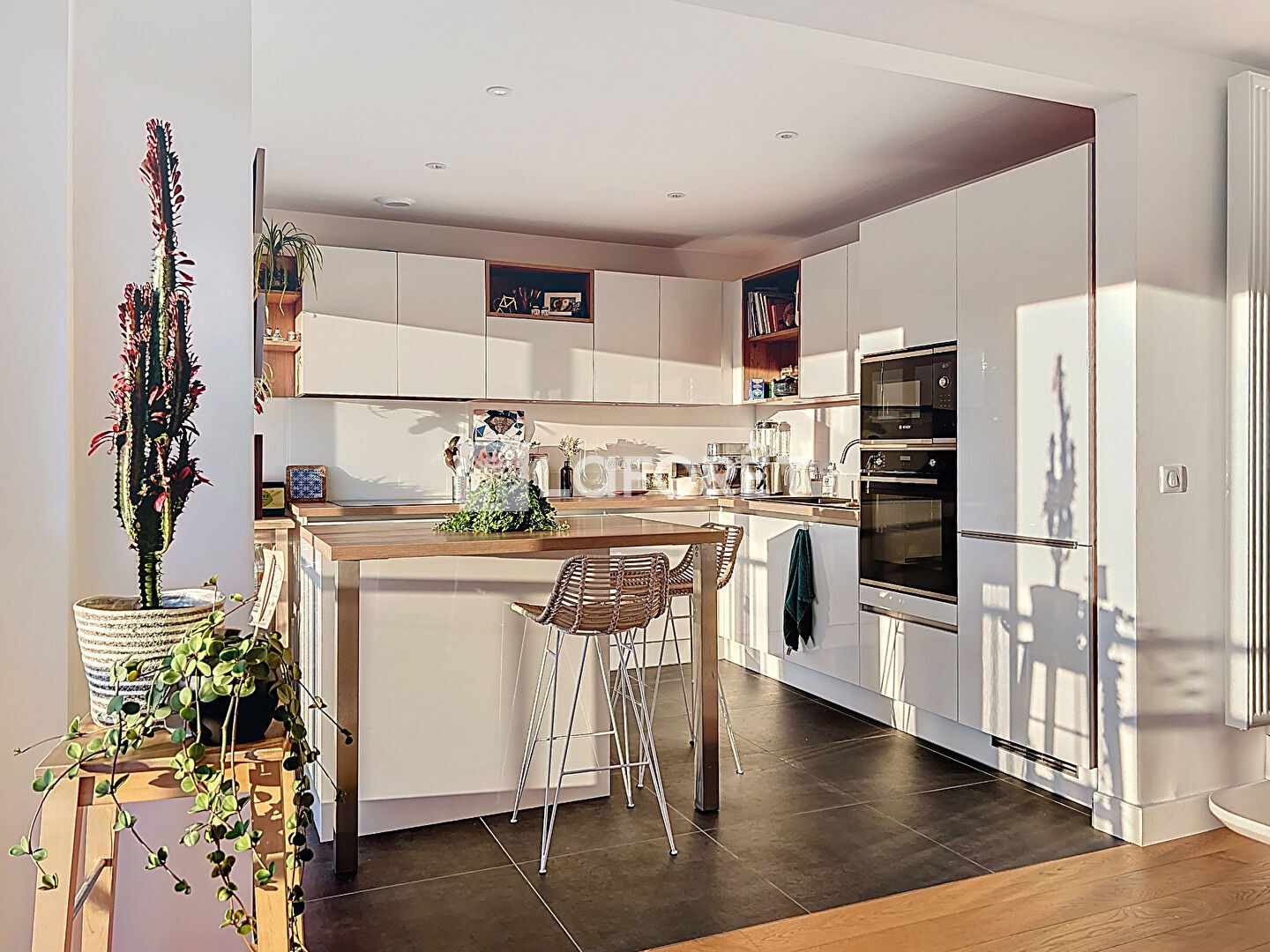 Il comprend une entrée fonctionnelle, une vaste pièce de vie avec cuisine américaine aménagée équipée totalisant 43m² et ouvrant sur un balcon filant de 12 m², des toilettes invités.