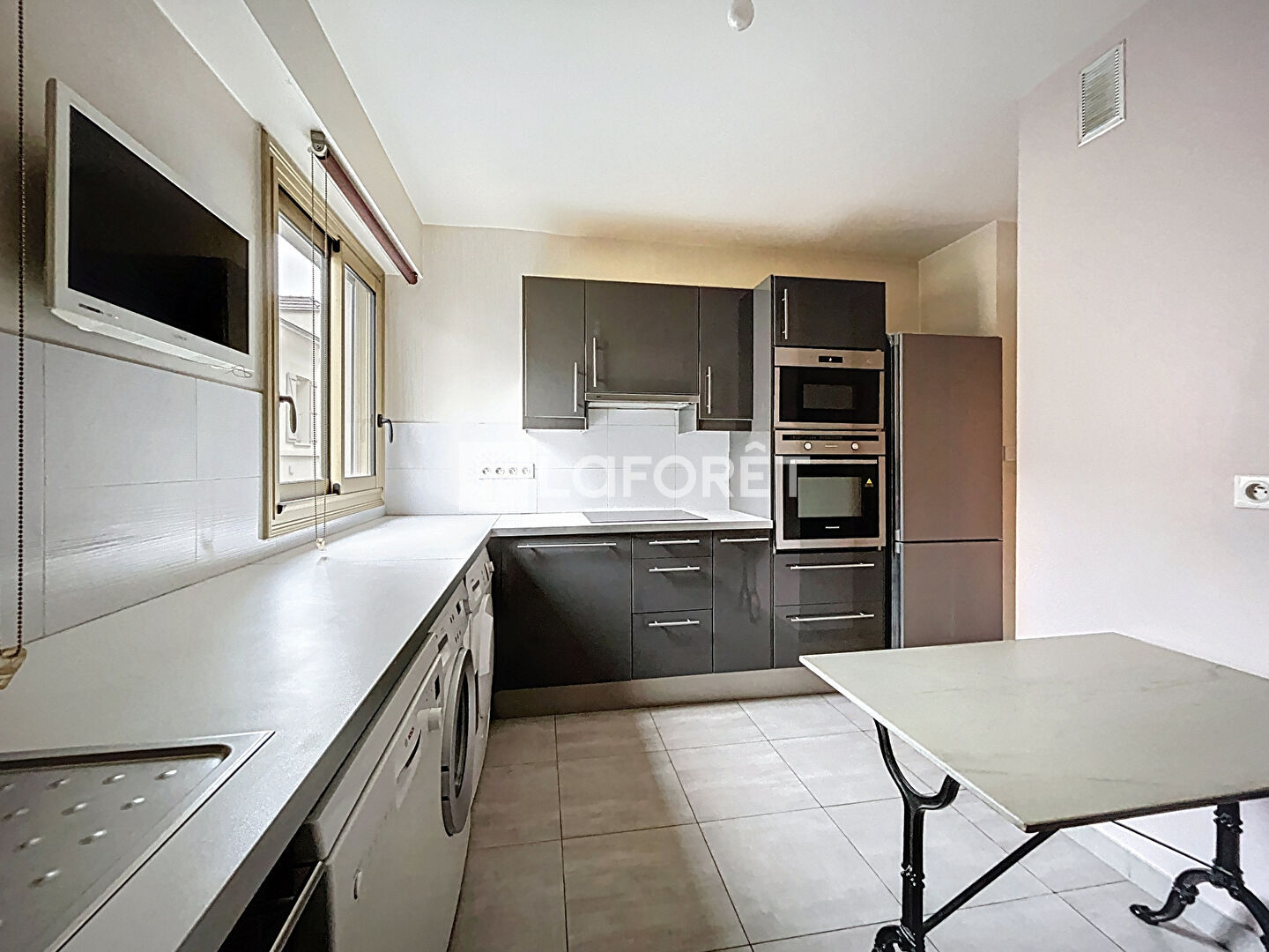 L'entrée avec placard dessert un vaste séjour de 37 m², ouvrant sur un balcon de 12 m² exposé plein Sud, ainsi qu'une grande cuisine dinatoire aménagée et équipée d'environ 12 m².