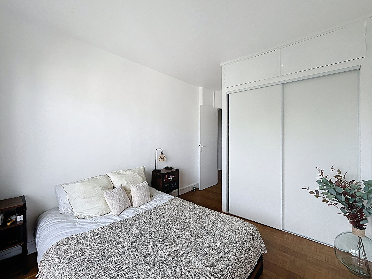 Il se compose d'un séjour lumineux ouvrant sur un grand balcon de 9 m² exposé ouest, sans vis-à-vis. La cuisine, indépendante et aménagée, dispose d'un cellier attenant. L'appartement offre également deux chambres confortables, dont l'une avec un accès direct au balcon, une salle de douche moderne et un WC séparé.