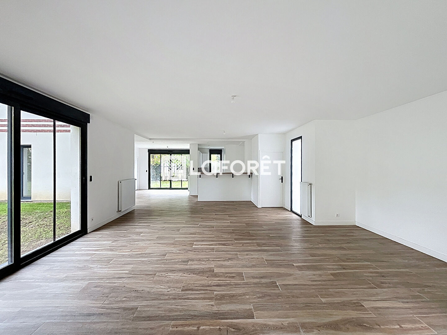 Le rez-de-chaussée s'ouvre sur une vaste pièce de vie traversante, baignée de lumière grâce à ses grandes baies vitrées. L'espace intègre une cuisine ouverte aménagée, un coin repas convivial et un salon confortable donnant sur le jardin.