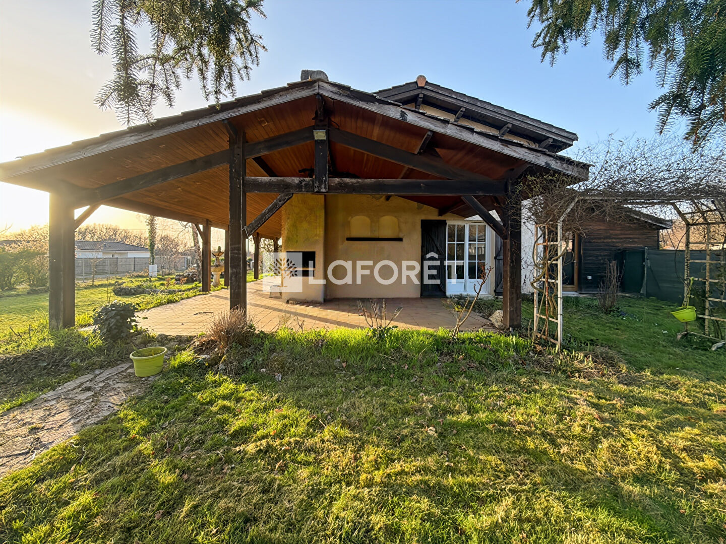En extérieur chalet en bois isolé de 39 m² alimenté en électricité et en eau. Un jardin clos de 2339 m² vient compléter le bien.