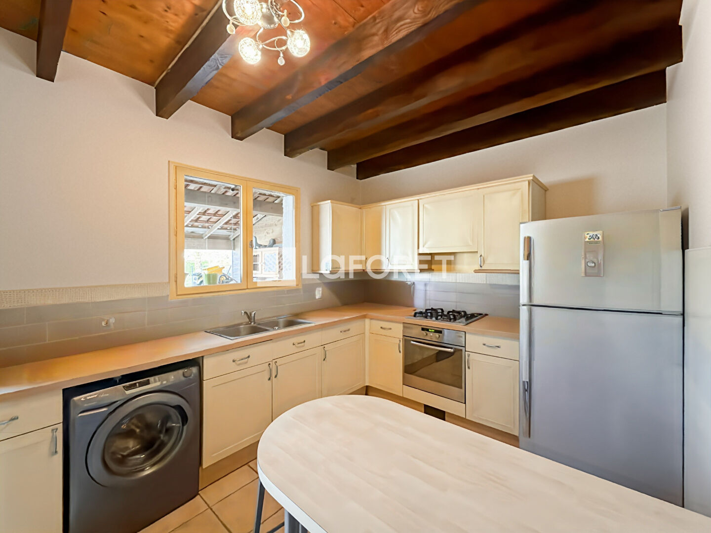 Elle offre en rez de chaussée un grand séjour lumineux, une cuisine indépendante et équipée, une buanderie, une salle de bains (douche + baignoire) , un WC indépendant et 3 chambres.