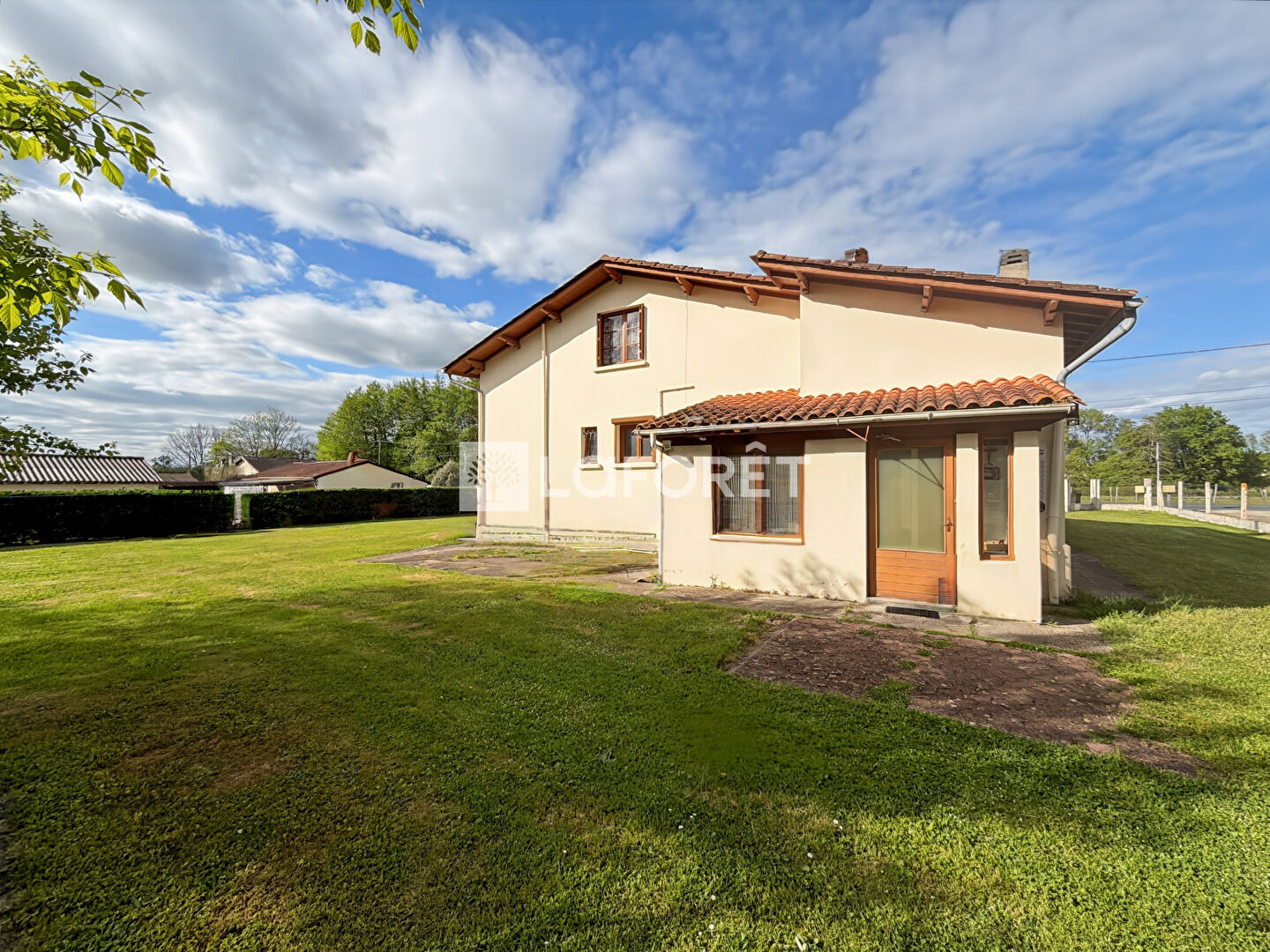 Elle se compose, au rez-de-chaussée, d'une pièce de vie comprenant salon et salle à manger, d'une cuisine indépendante, d'une salle d'eau, d'un WC séparé, ainsi que de deux chambres. Un cellier vient compléter cet espace.