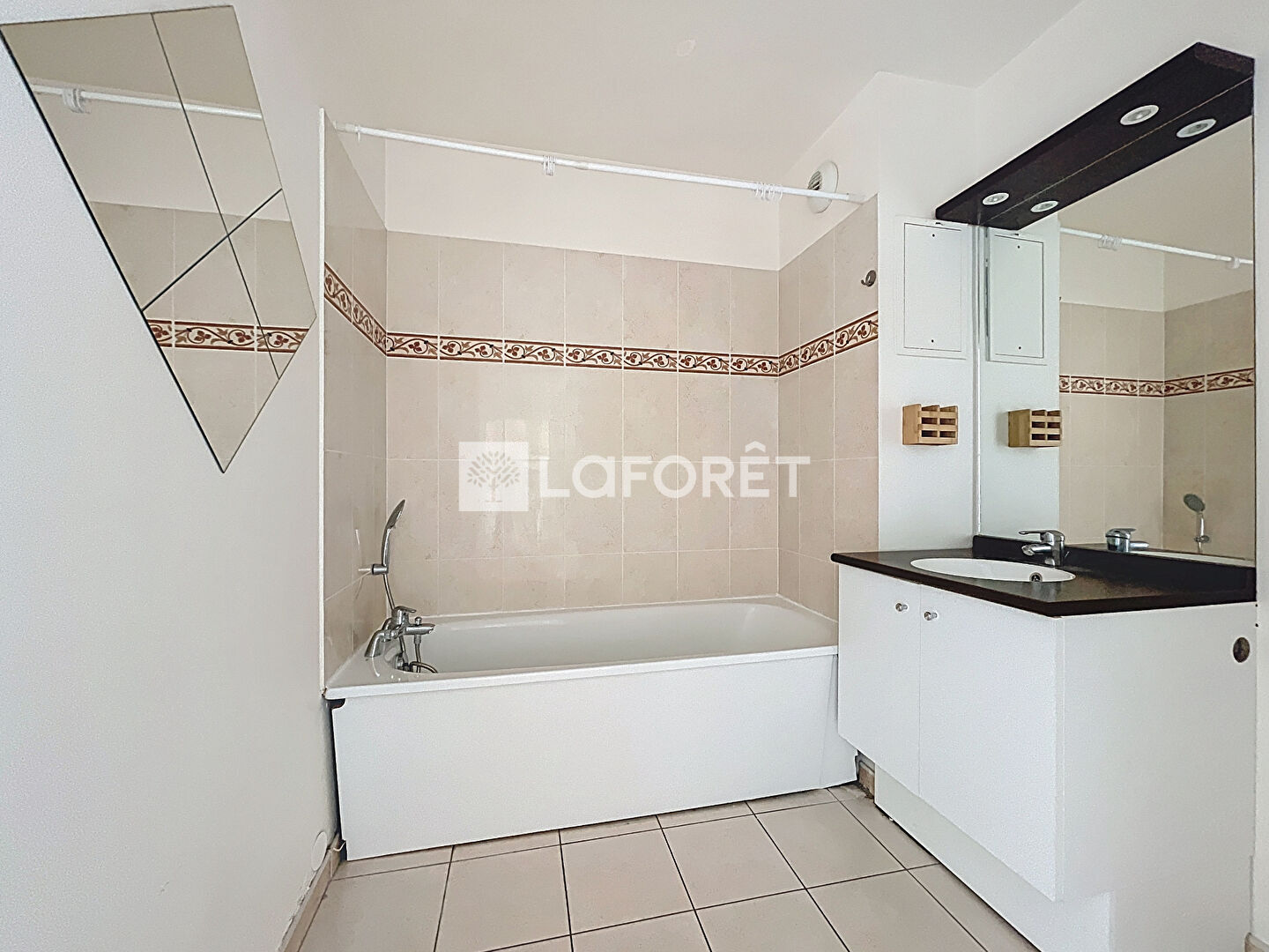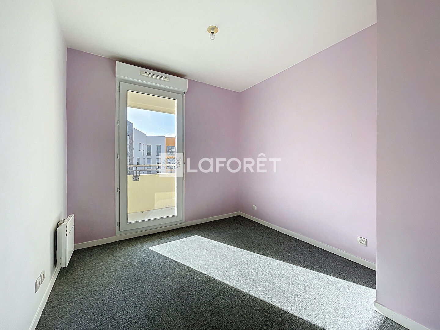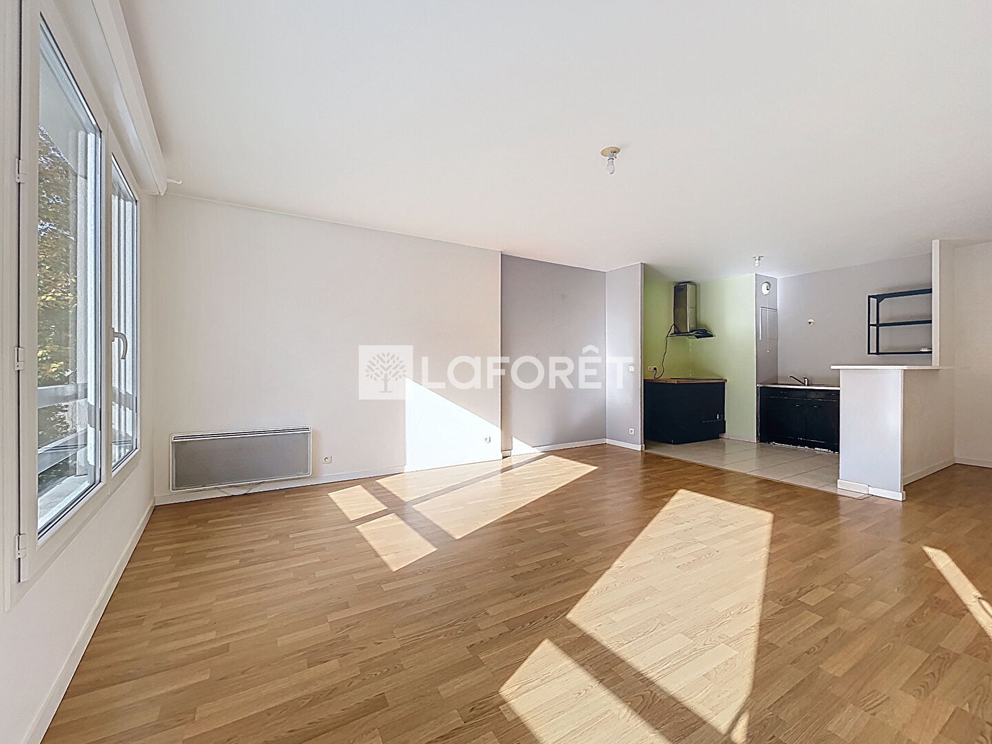 Une entrée, une cuisine aménagée ouverte sur un séjour avec placards intégrés, deux chambres, une salle de bains, un WC séparé.