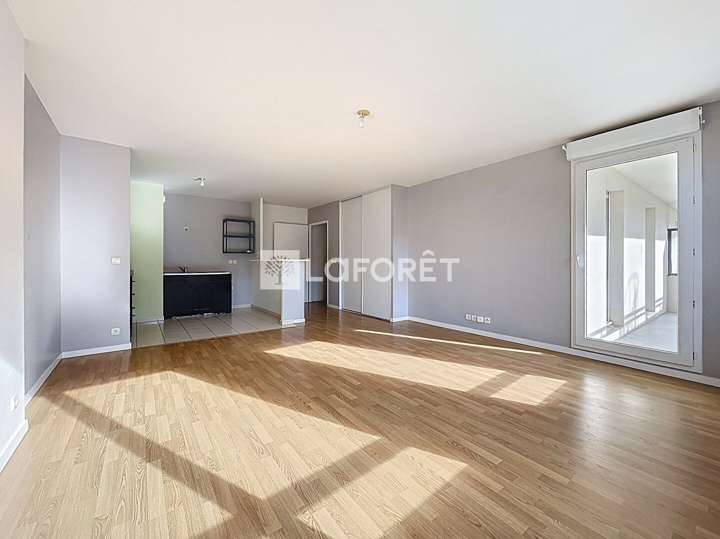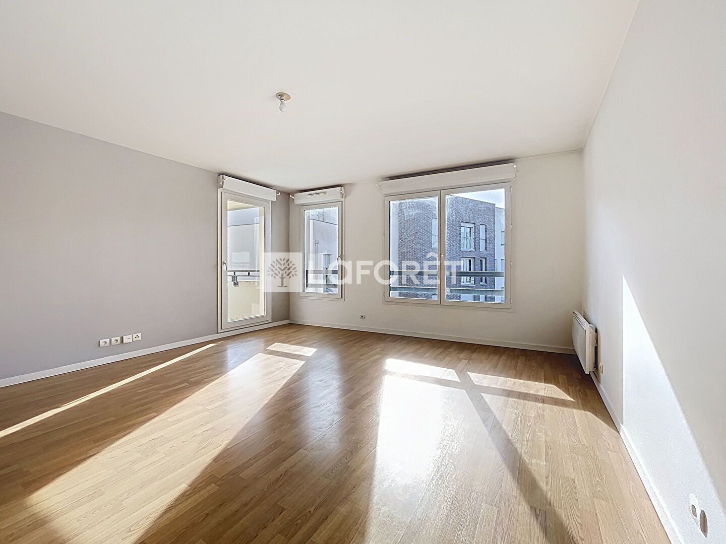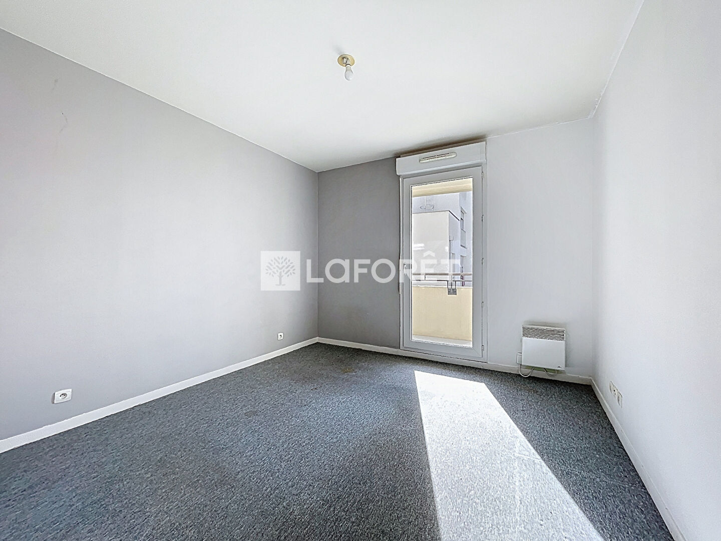 Une entrée, une cuisine aménagée ouverte sur un séjour avec placards intégrés, deux chambres, une salle de bains, un WC séparé.