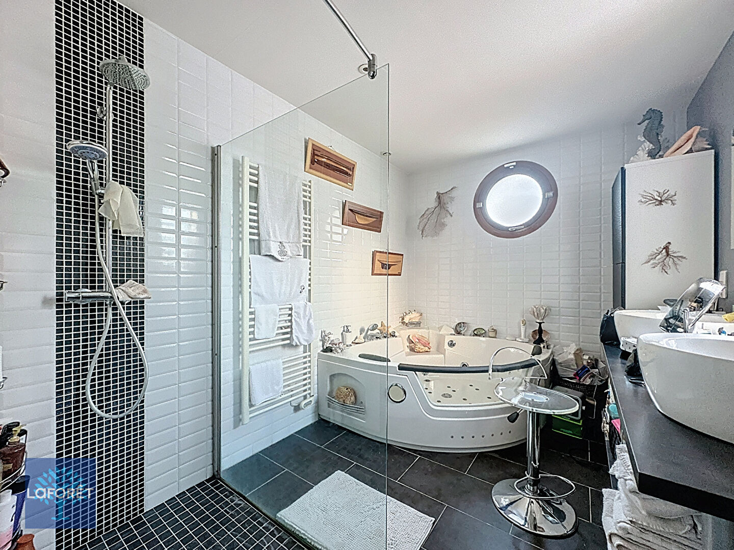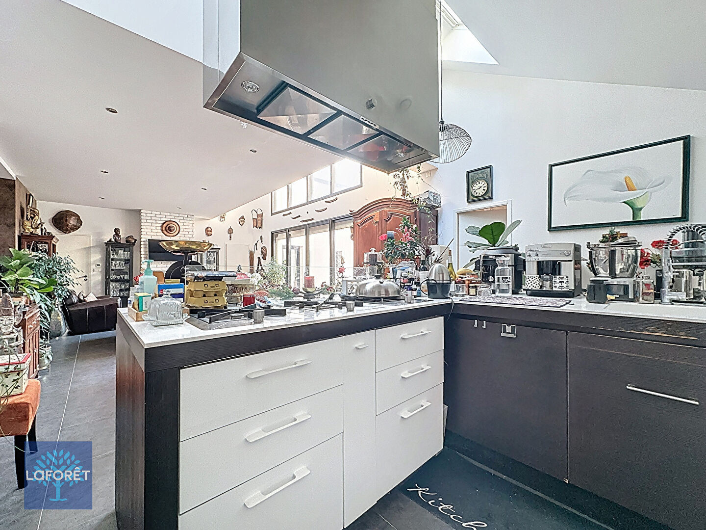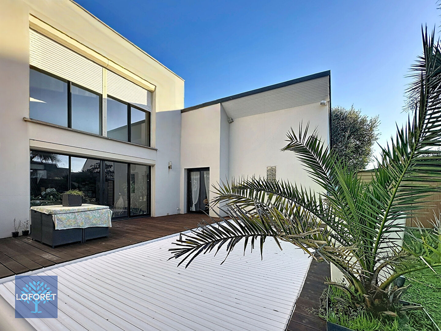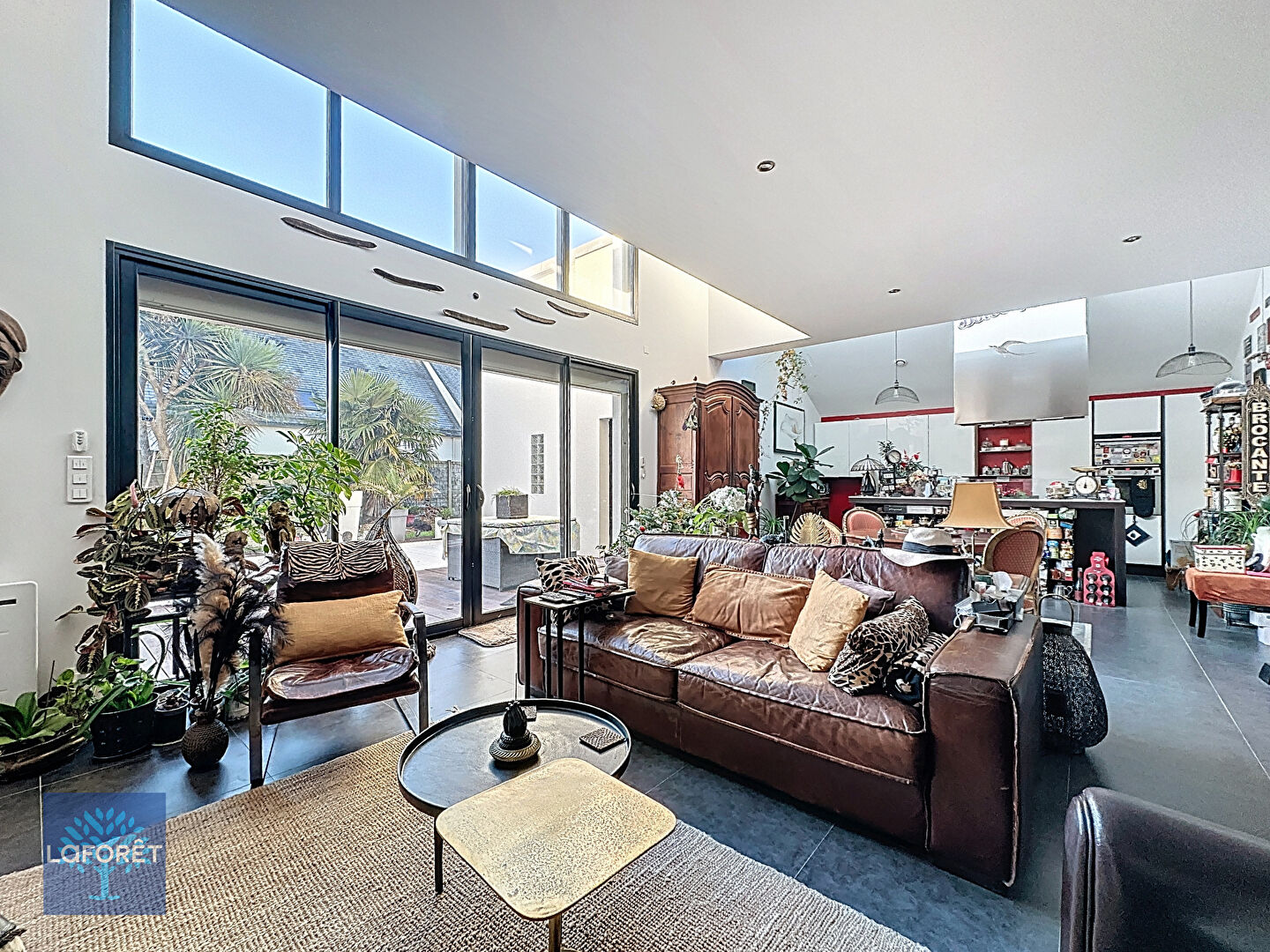 La maison s'ouvre sur une pièce de vie aux volumes généreux, largement vitrée, sublimée par une luminosité naturelle exceptionnelle. Cet espace se prolonge harmonieusement vers une terrasse élégante et une piscine, parfaitement exposées et préservées de tout vis-à-vis, invitant à un véritable art de vivre intérieur/extérieur.