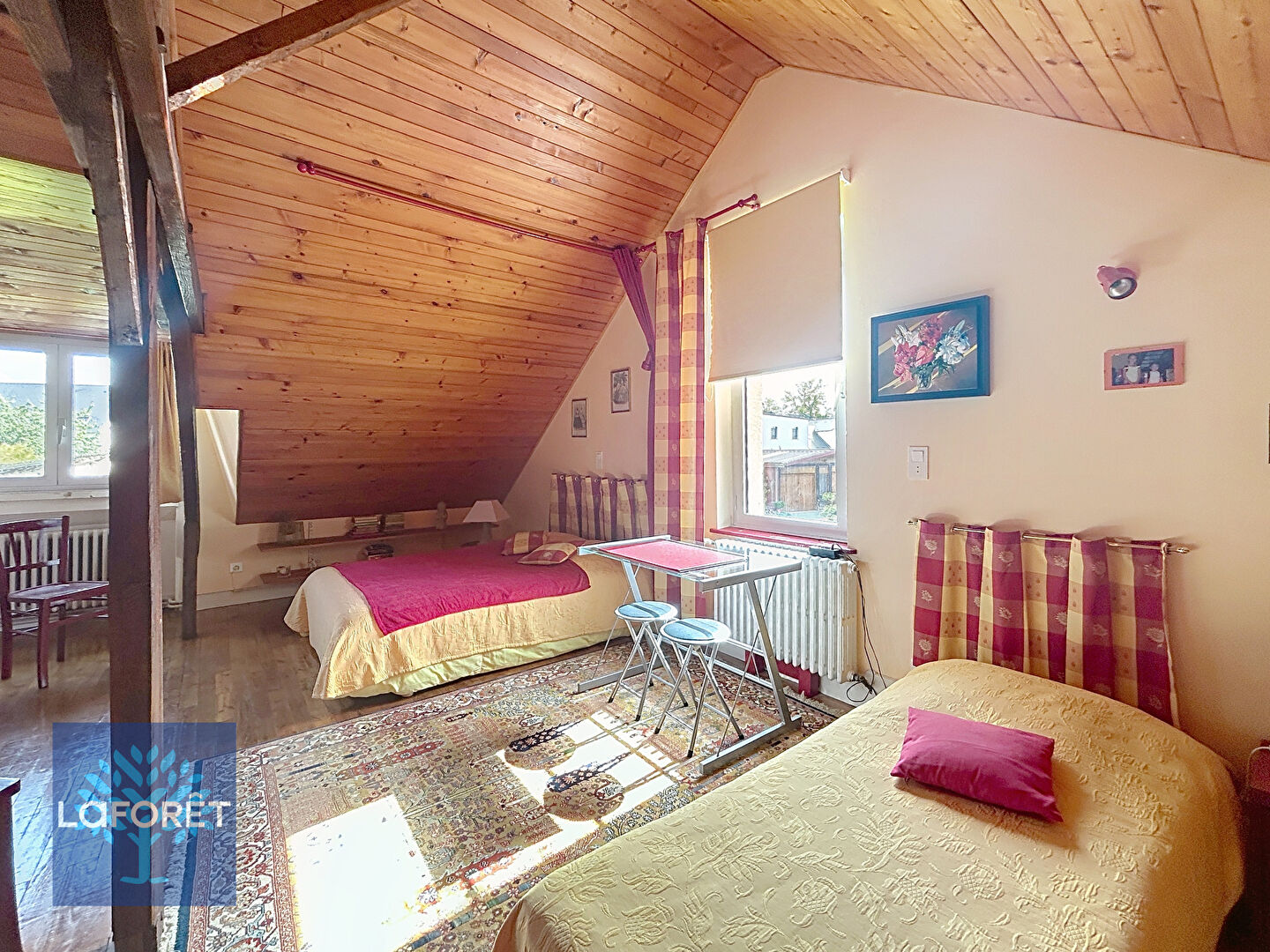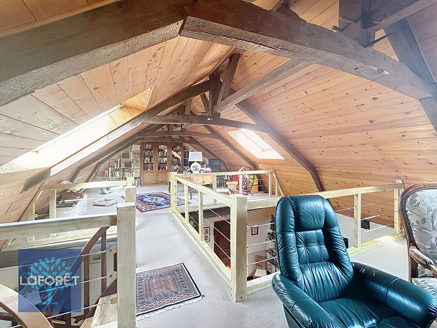 À l'étage, vous serez séduits par la mezzanine de 28 m², parfaite pour un bureau ou un espace lecture. L'espace nuit propose deux chambres supplémentaires, une salle d'eau avec WC, ainsi qu'un grenier offrant un potentiel d'aménagement complémentaire.