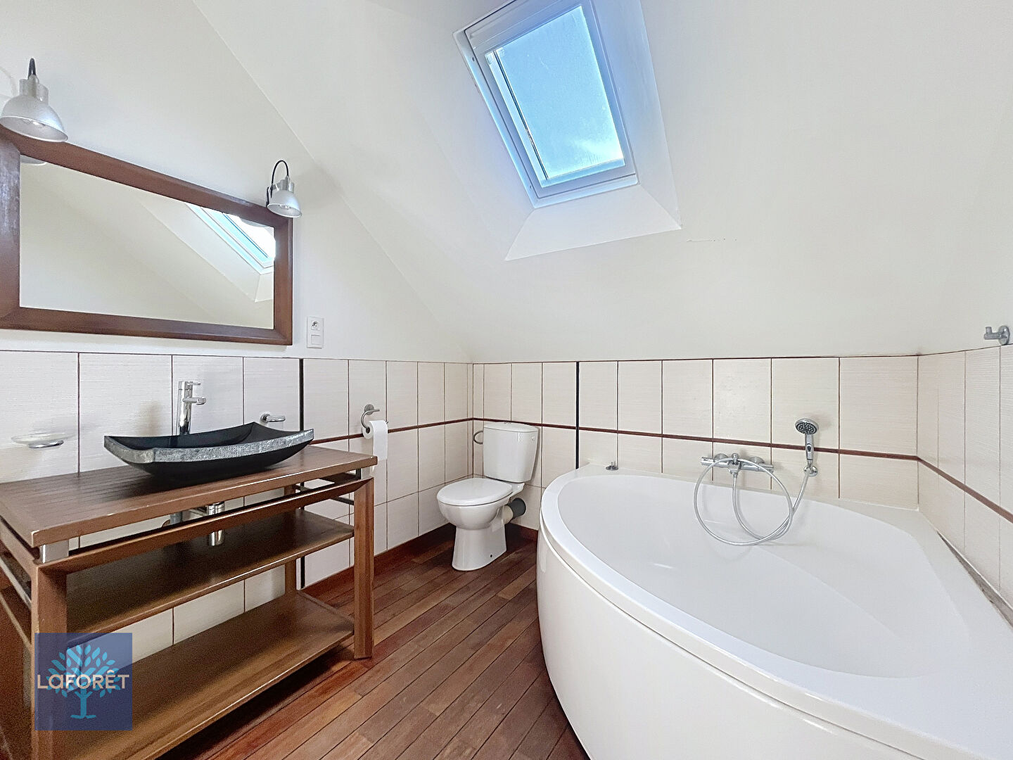 Maison lumineuse et au calme, elle dispose de 4 chambres, dont une au-rez-de-chaussée. Une salle d'eau, une salle de bain, 2 Wc.