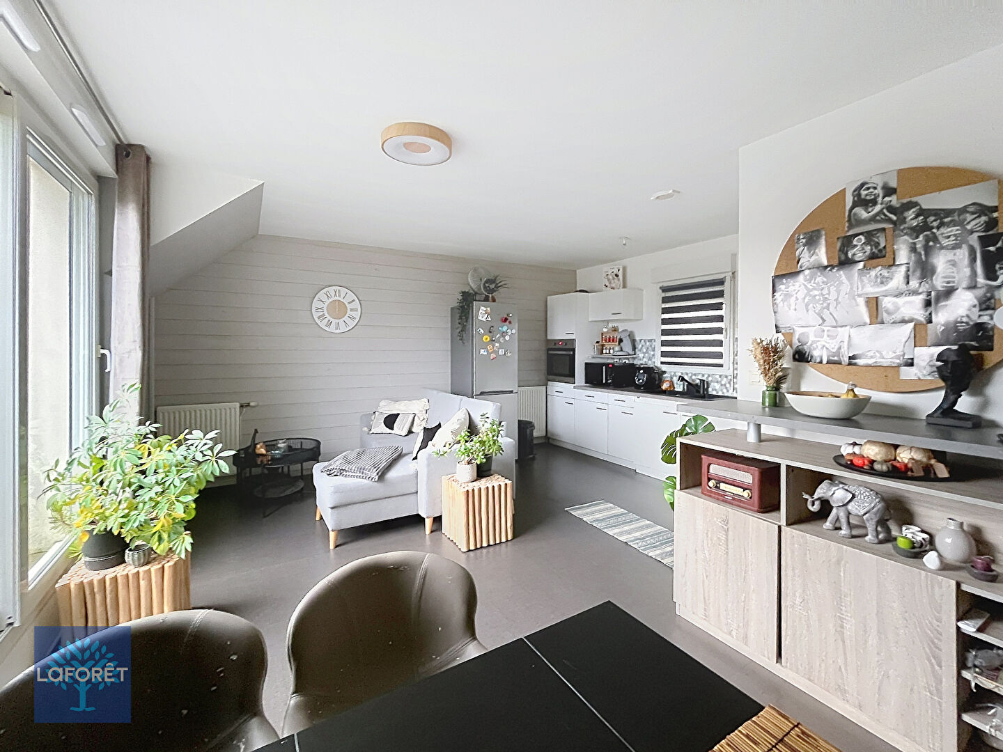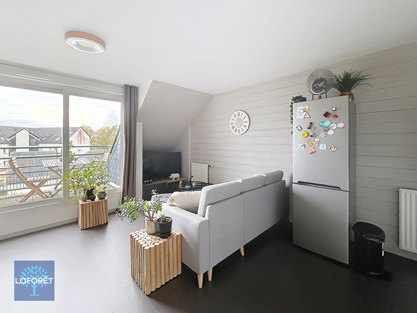 Il se compose d'une grande chambre avec placard, un séjour lumineux baigné de lumière naturelle, une salle de bain, WC et une pièce de vie cuisine fonctionnelle et lumineuse.