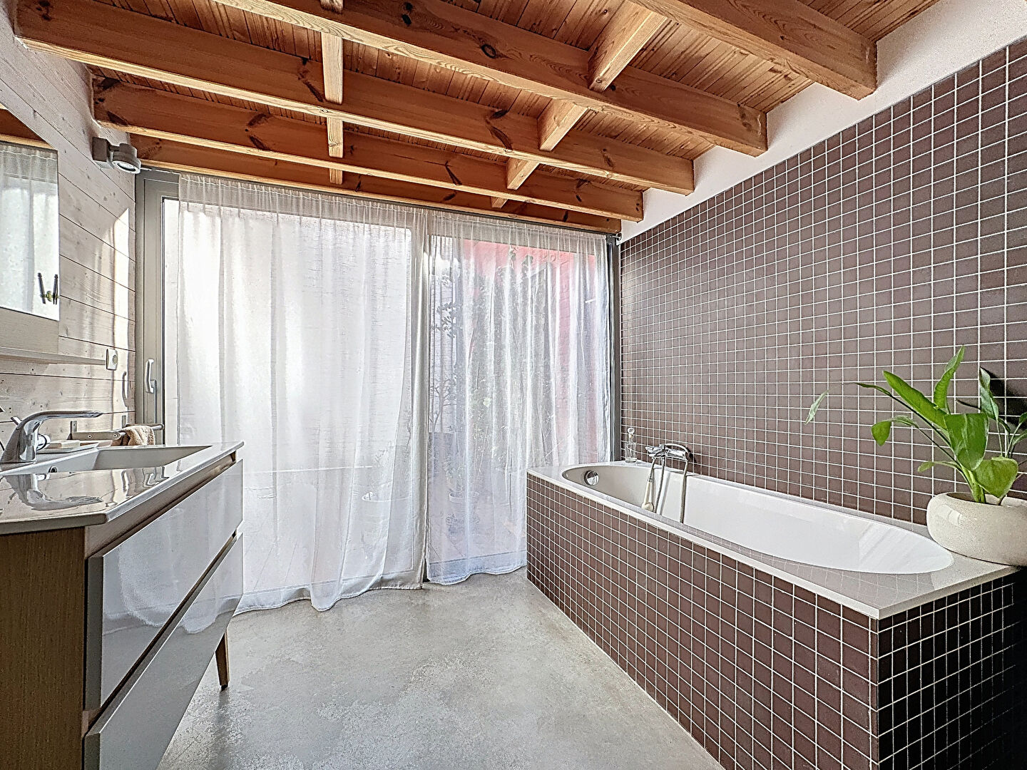 À l'extérieur, la terrasse à l'abri des regards vous invite à profiter de moments de détente en toute intimité.